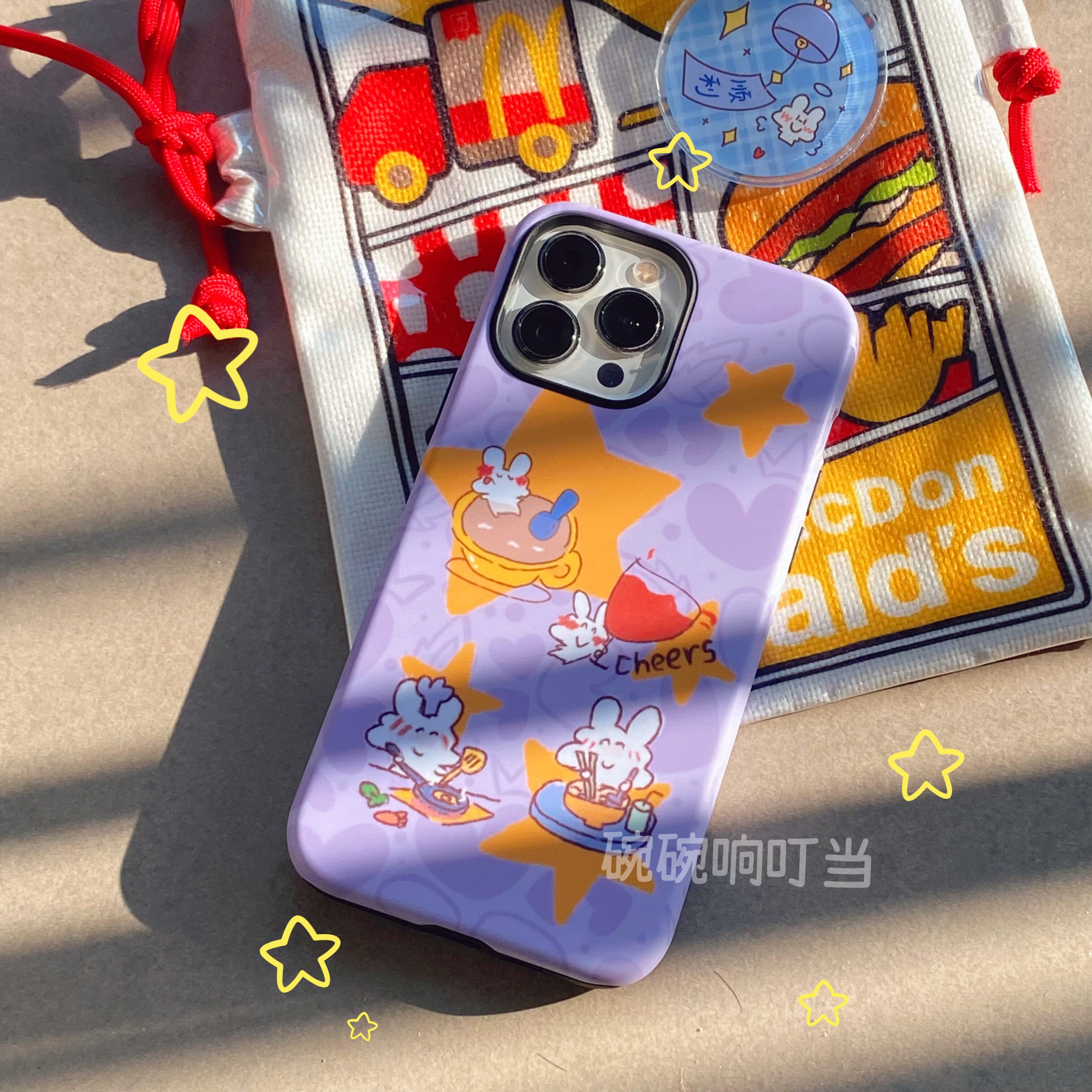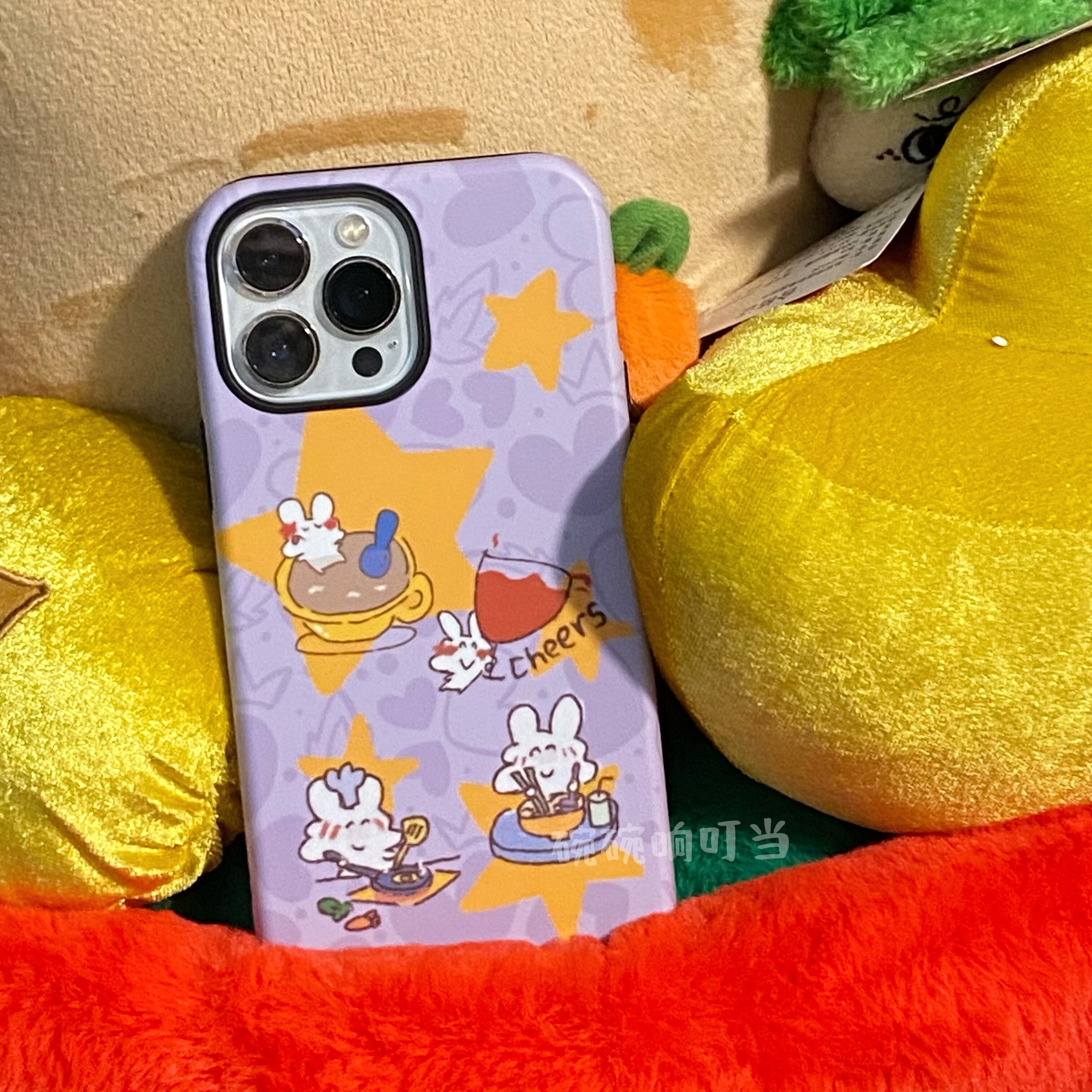碗碗原创 兔兔日常大孔紫色星星可爱大孔ins风磨砂手机壳菲林二合一软壳硬壳适用于苹果16华为小米OPPOVIVO