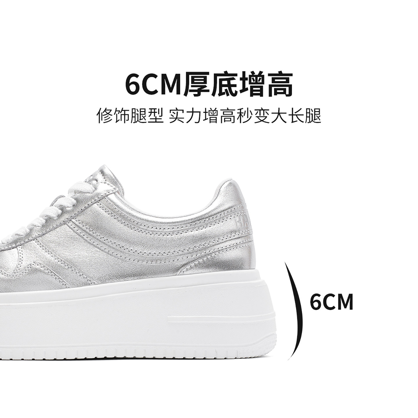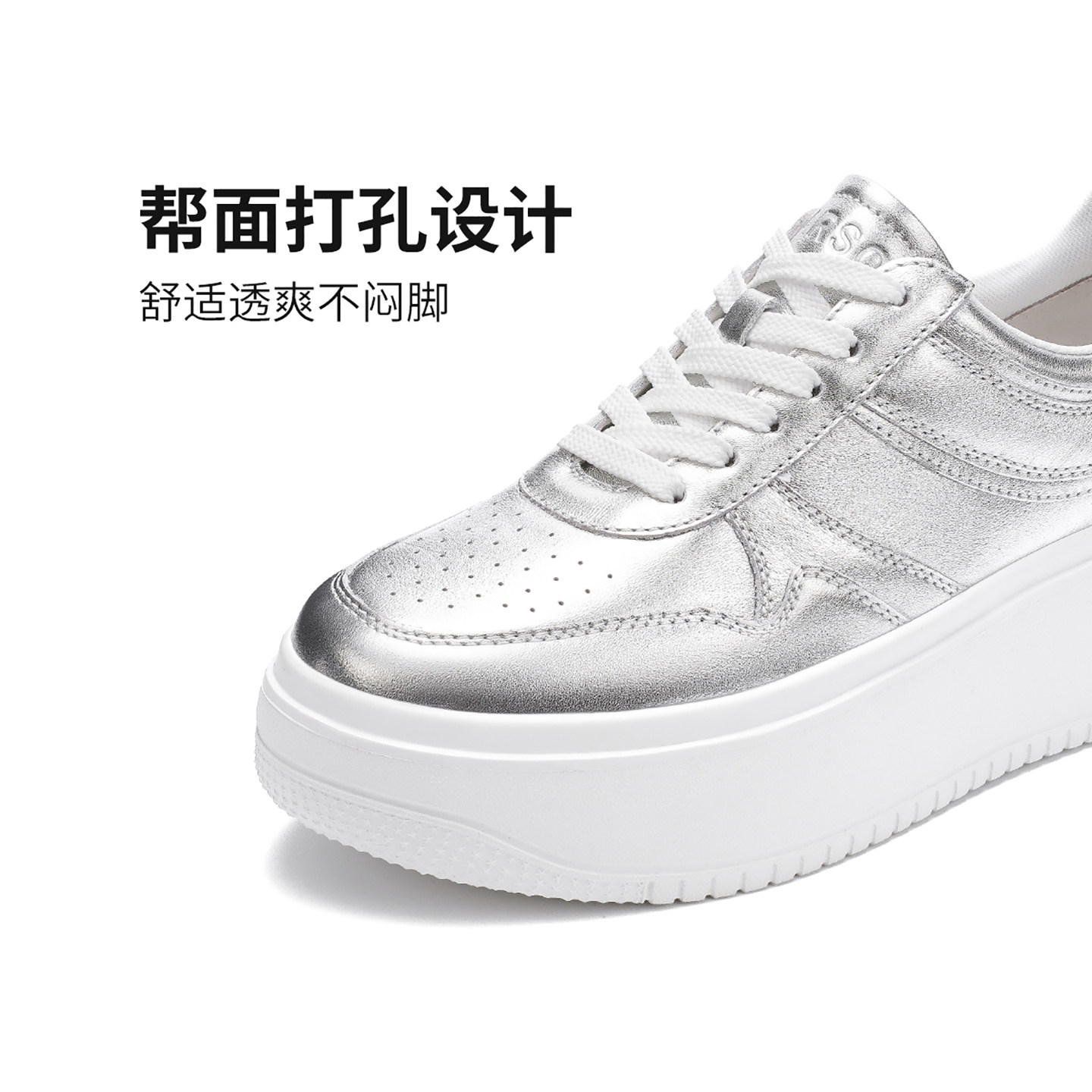 哈森/HARSON【悦动活力】25秋新款银色亮面厚底休闲板鞋小白鞋女