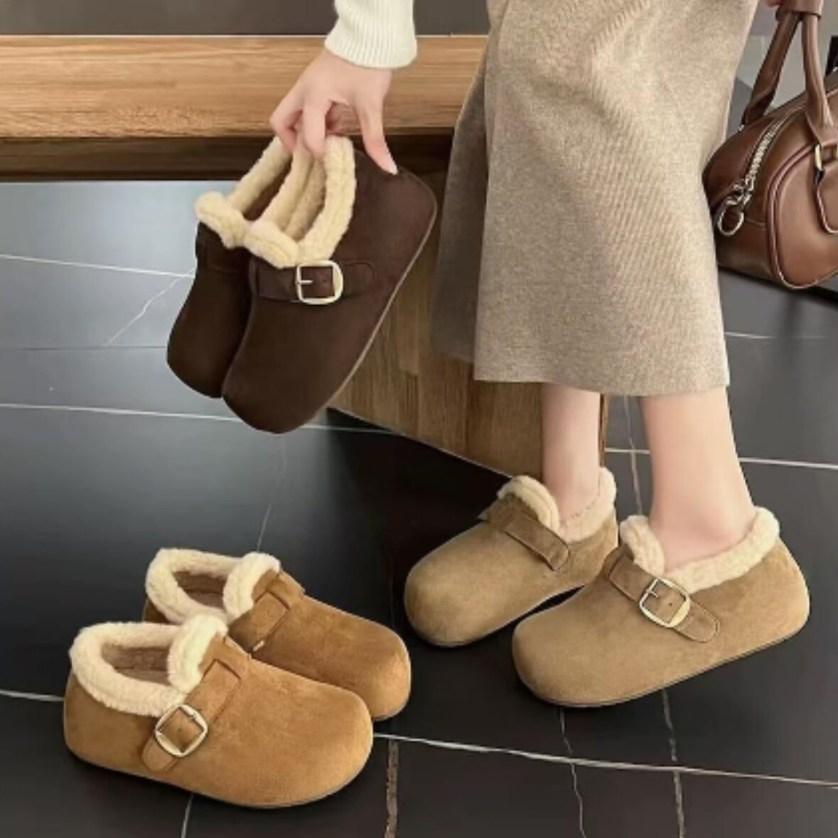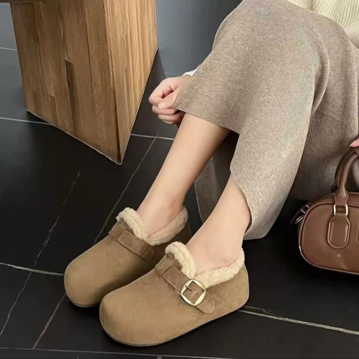 【专柜版】3公分厚底内增高加绒全包勃肯鞋女新款毛毛鞋雪地靴鞋