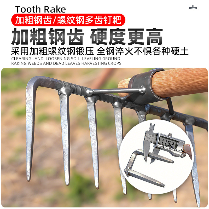 全钢耙子除草神器工具老式钉耙松土神器九齿钉耙除草专用耙子