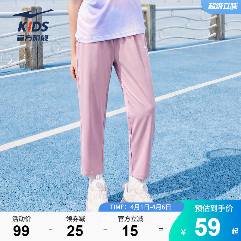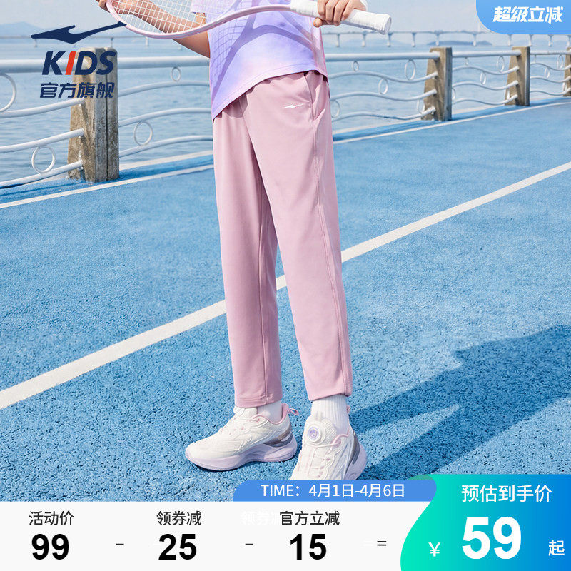 鸿星尔克童装女童长裤2026春夏季宽松直筒青少年休闲长裤儿童裤子