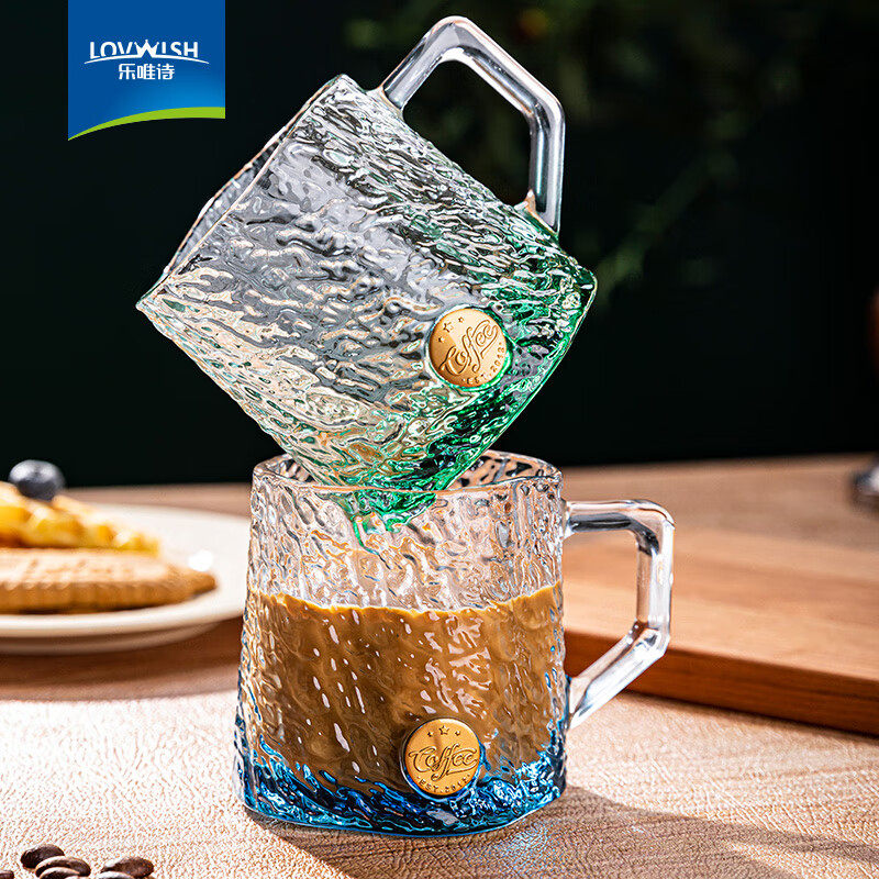 玄冰玻璃杯办公室喝水杯家用透明水杯高颜值圣诞咖啡杯牛奶杯子