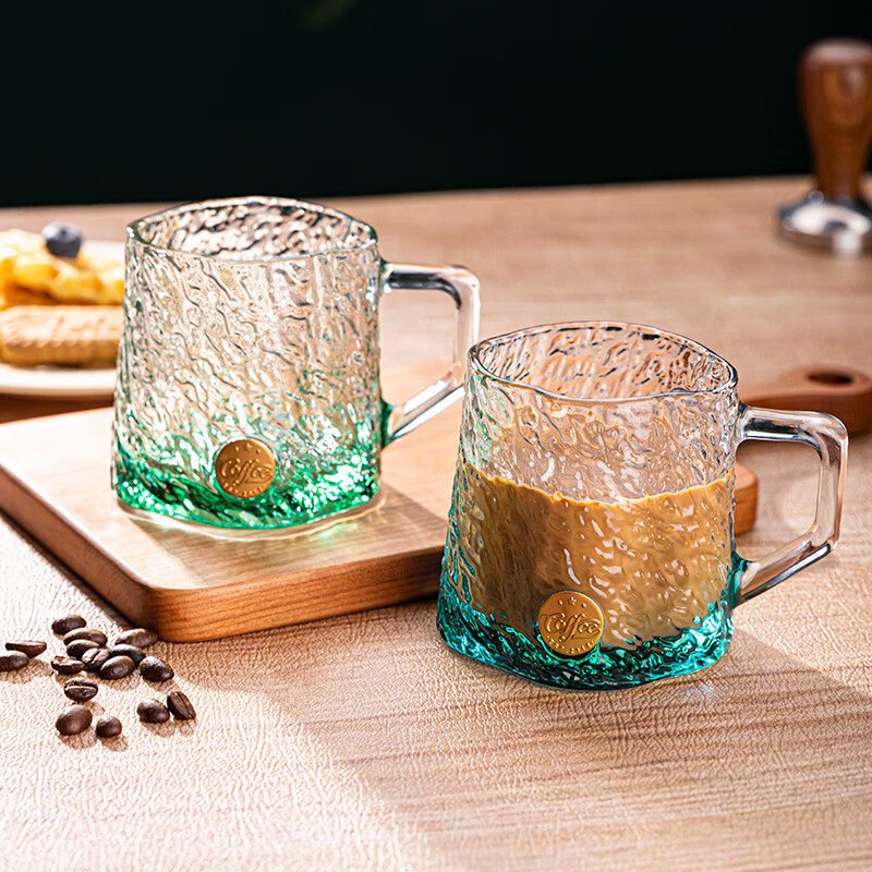 小众设计ins风不规则雨雾玻璃杯冰美式拿铁咖啡杯子果汁杯冷饮杯