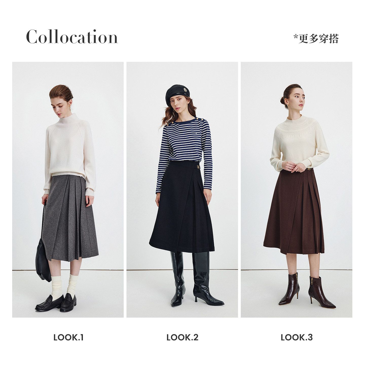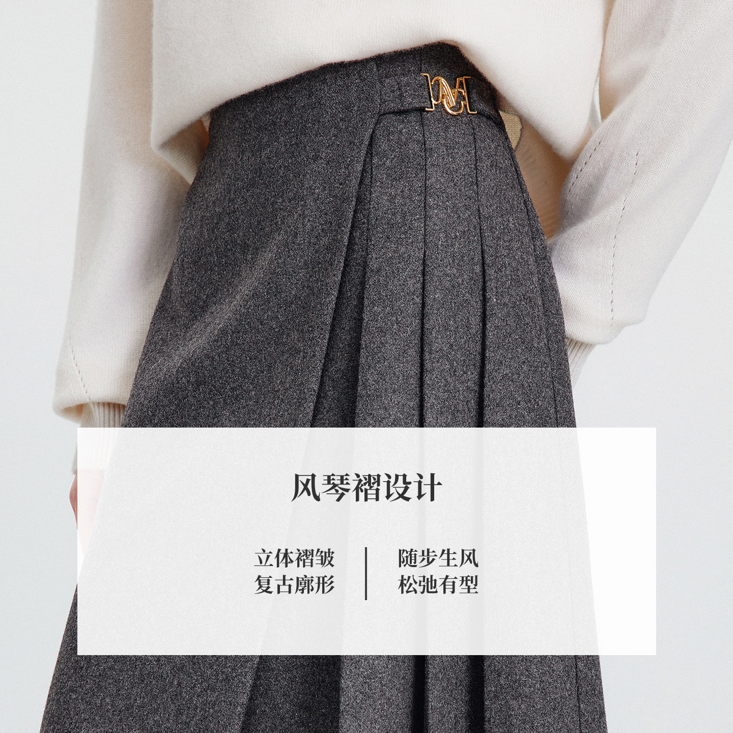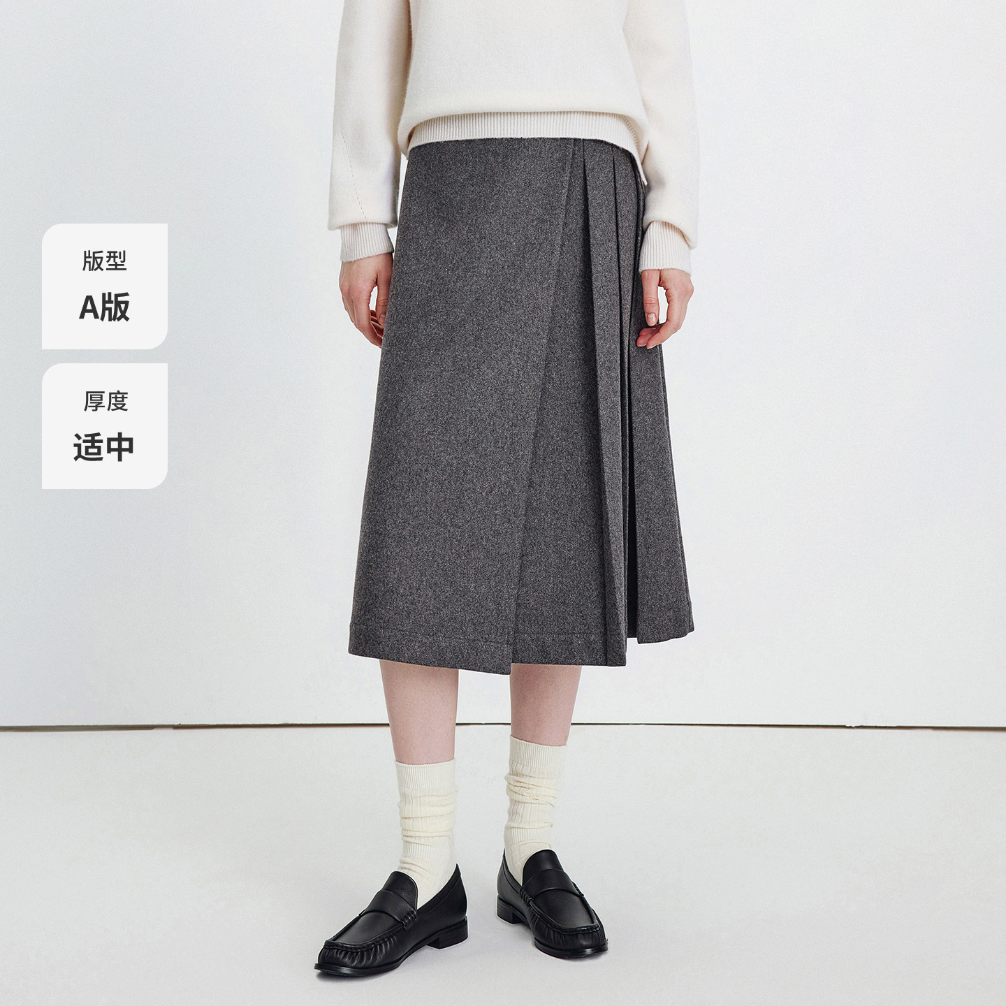 柒月末 两面穿格雷系灰色百褶裙中裙知识分子秋冬羊毛毛呢半身裙