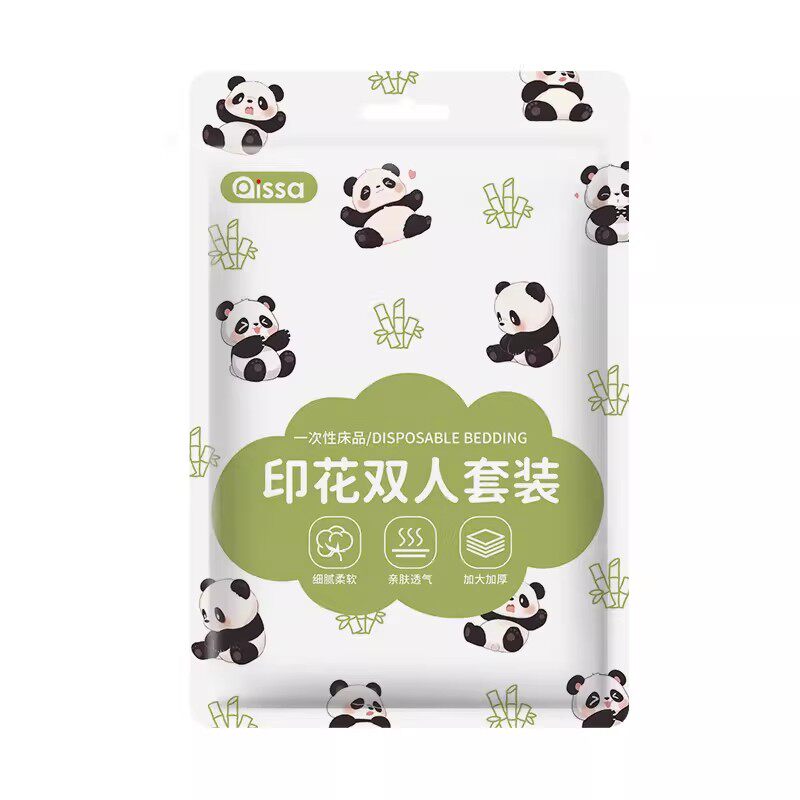 一次性床单被罩枕套被套酒店四件套旅行双人加厚隔脏熊猫床垫双层