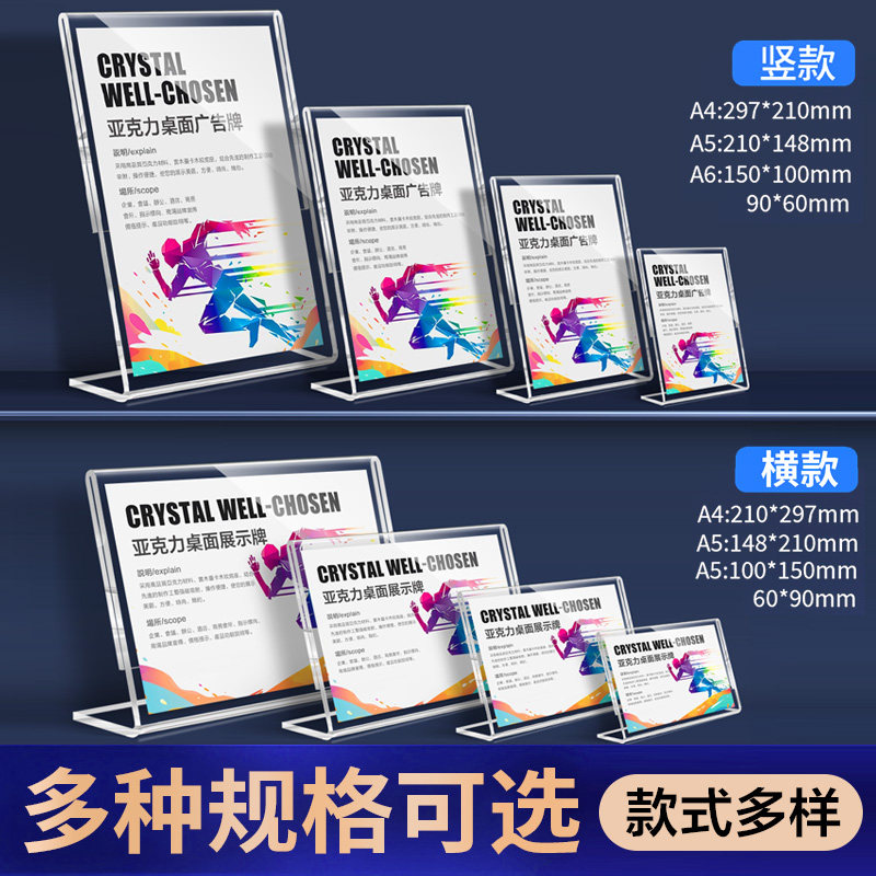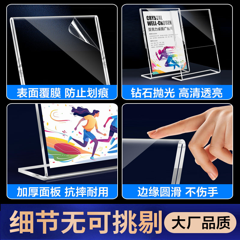 L型亚克力台卡展示牌a4立牌展示架磁吸斜面广告板桌牌桌面A5水牌菜单餐饮美容院价格价目表a6台签T摆台式定制