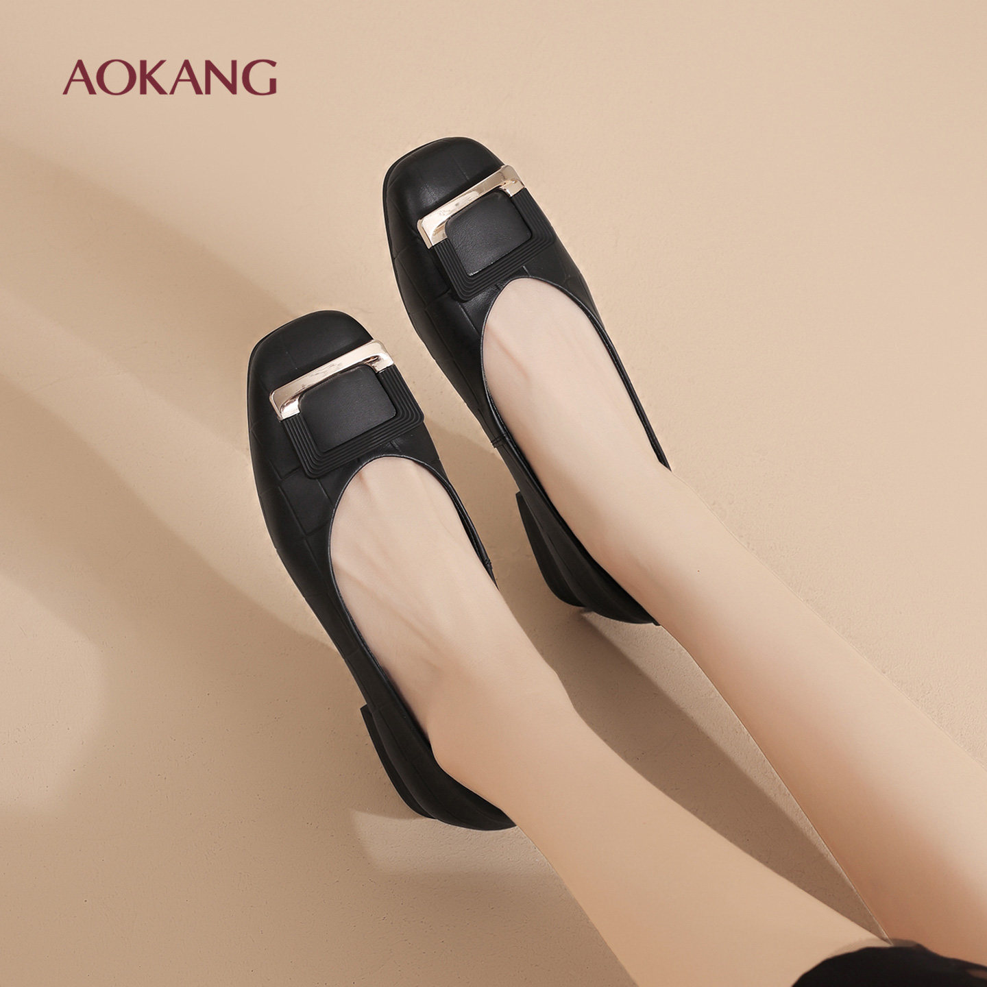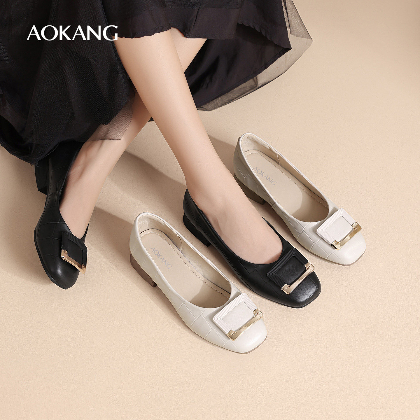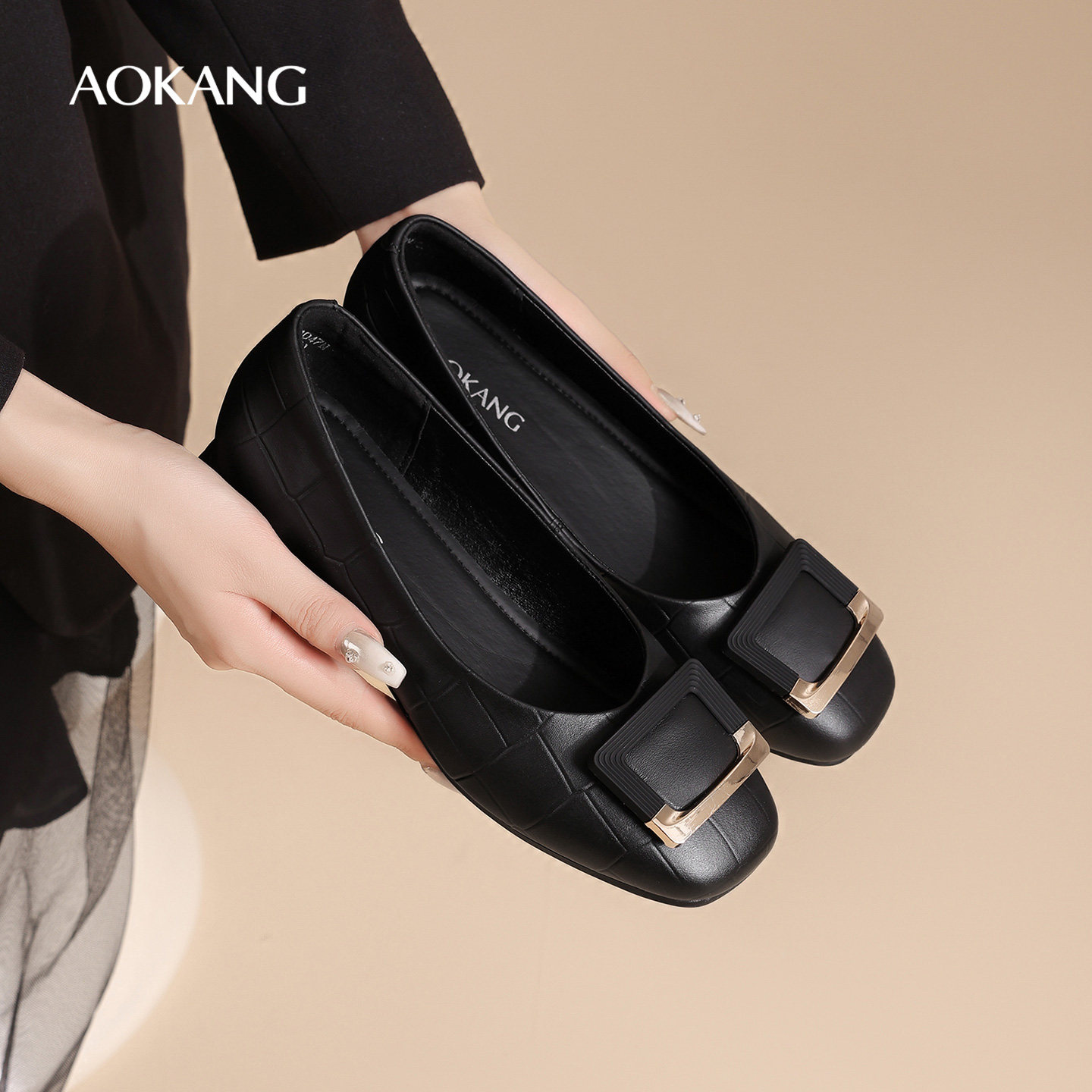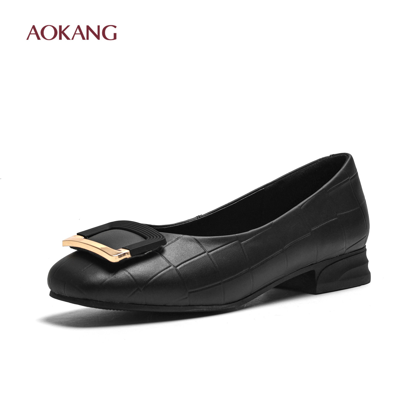 奥康 女鞋方扣粗跟高跟鞋女新款妈妈软底上班穿不累脚单鞋子皮鞋N