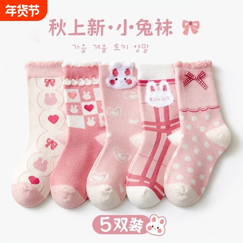 儿童袜子棉袜秋冬中筒袜女童秋季宝宝粉色甜美棉袜女宝2024秋新品