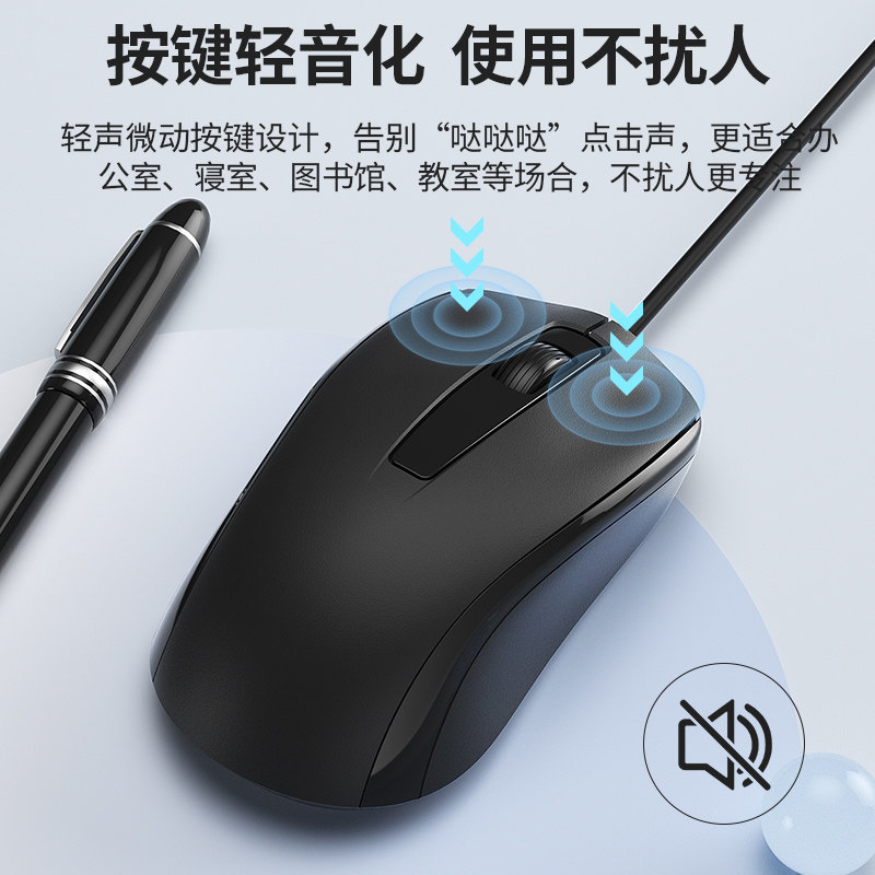 BOW 有线鼠标静音人体工学男女便携无声笔记本台式机电脑办公专用