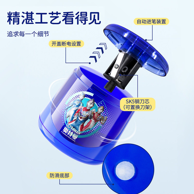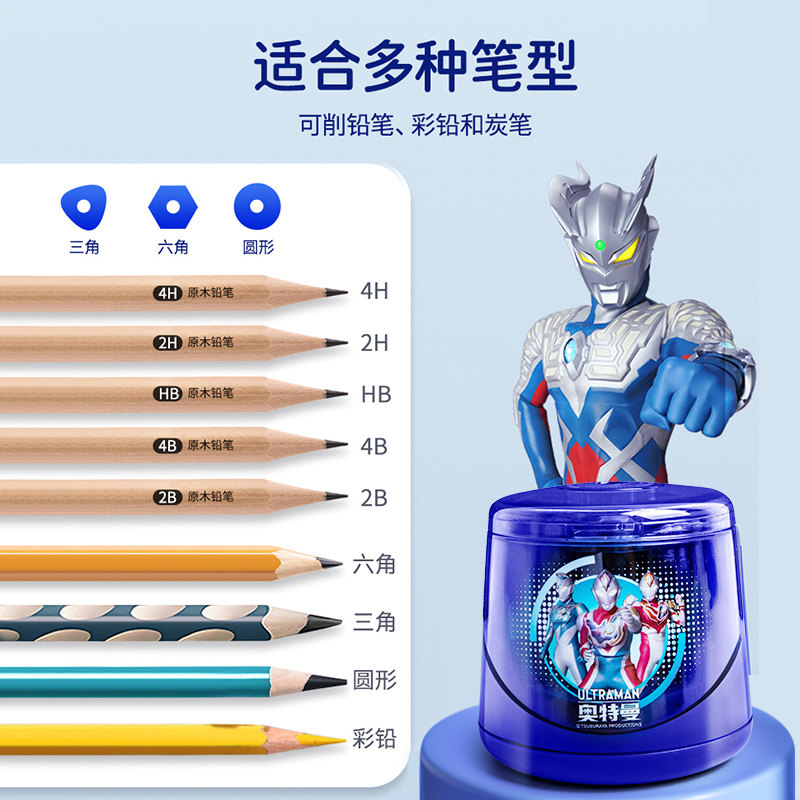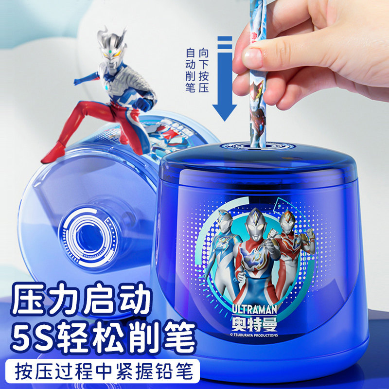 奥特曼电动削笔器转笔刀儿童小学生专用销铅旋卷笔刀削铅笔神器学习用品刨笔削笔机车消剥绞笔刀半全自动充电