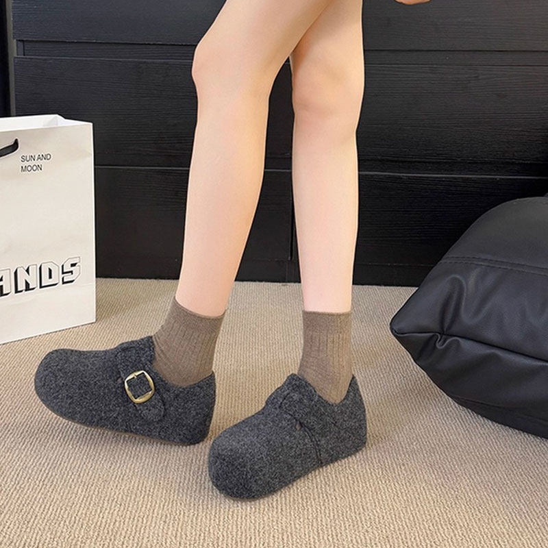 巨好看厚底增高灰色加绒呢子勃肯鞋女2025冬季新款豆豆鞋博肯棉鞋