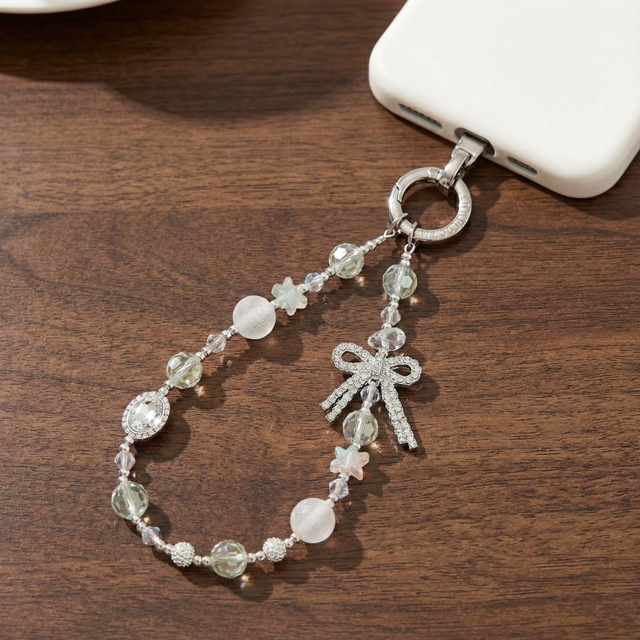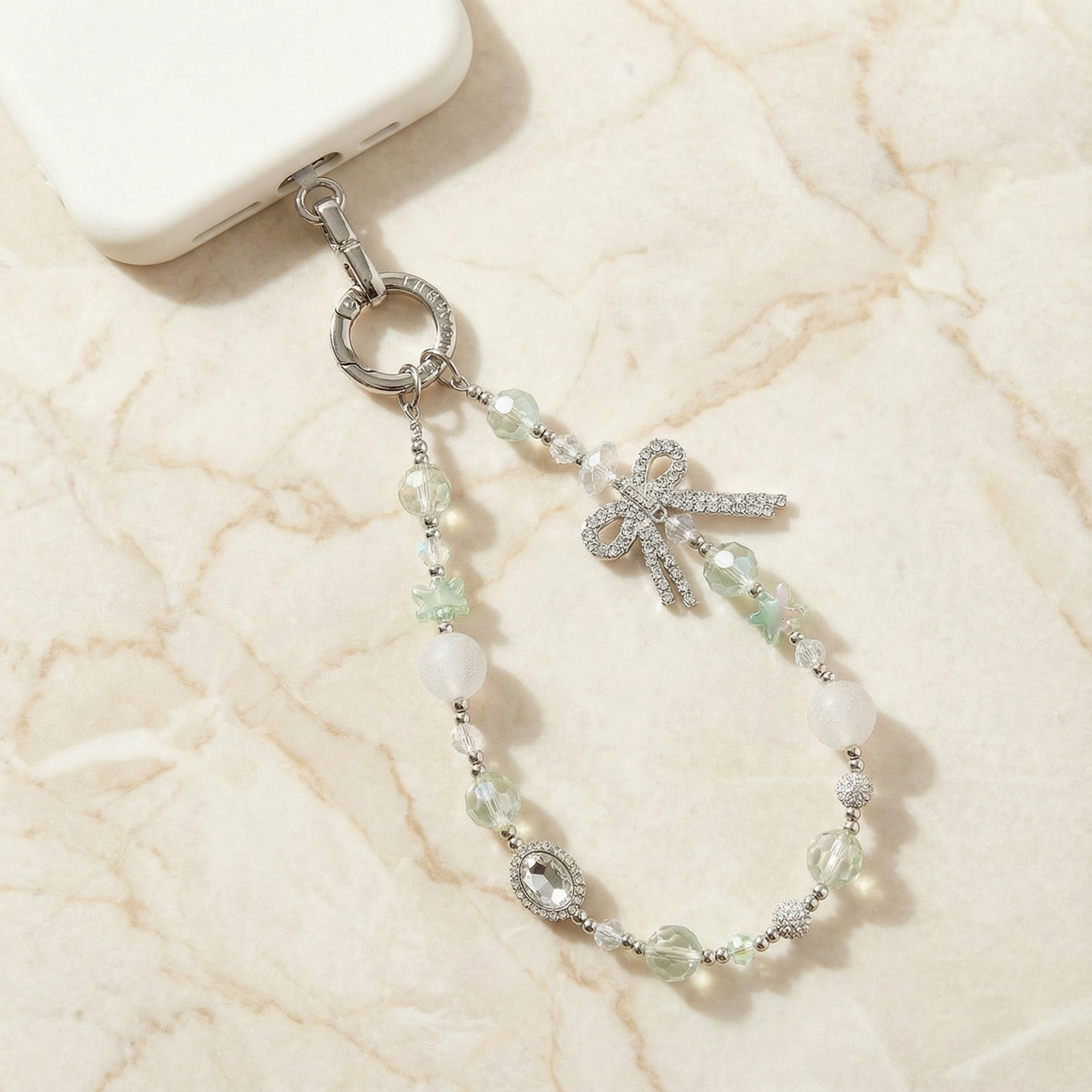 蝴蝶结水晶珍珠手机链轻奢小众精致高级感挂手腕挂绳挂饰配件挂件