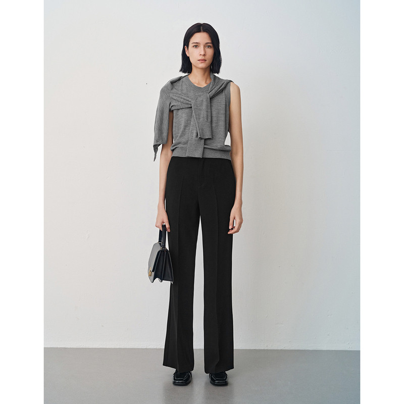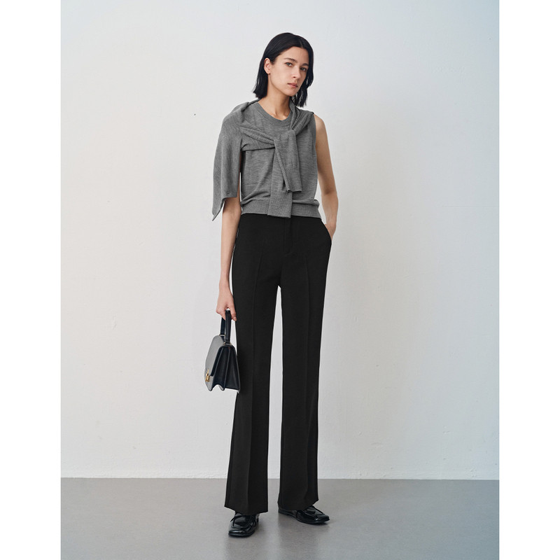MISSCOCOON可可尼C3系列黑色裤子25年秋款三醋酸显瘦高微喇西裤女