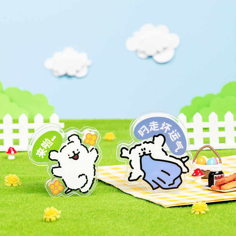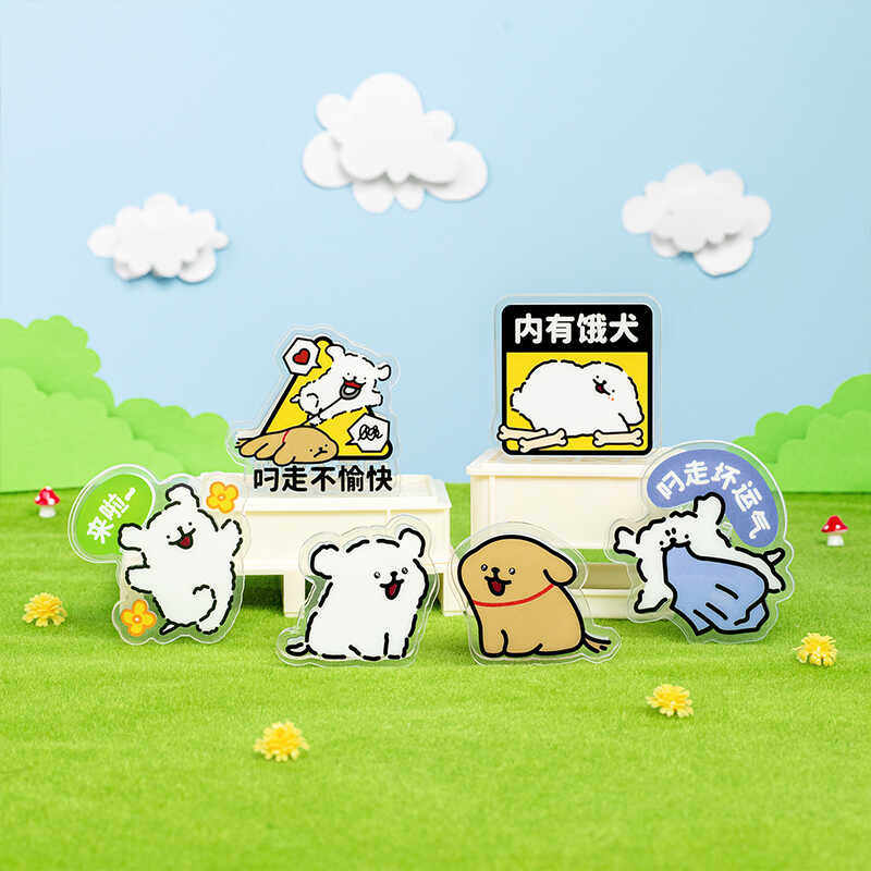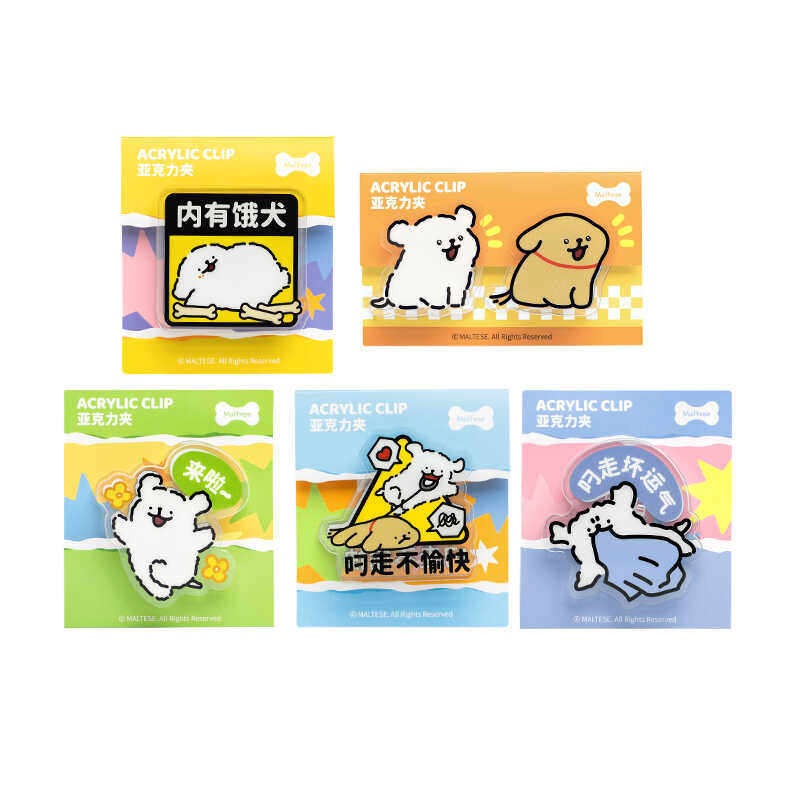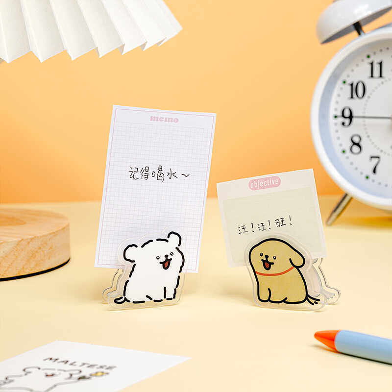 线条小狗Maltese原创亚克力夹子叼走坏运气多功能文具双面便签夹