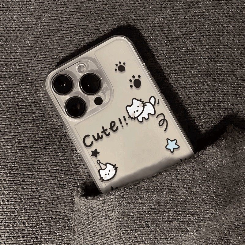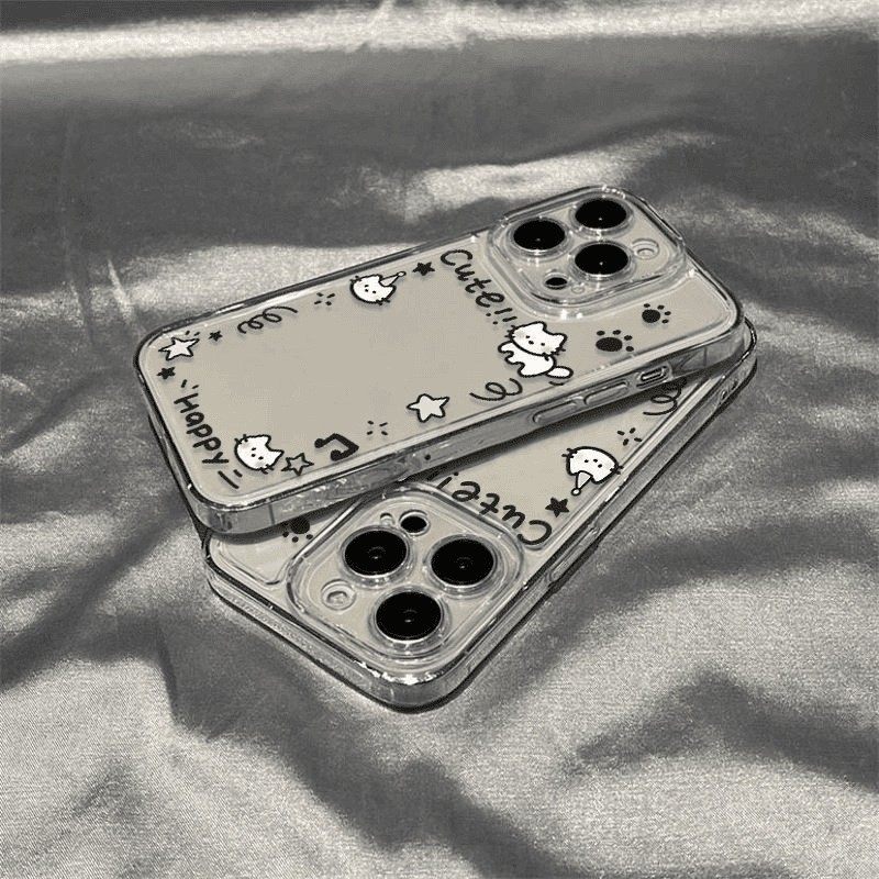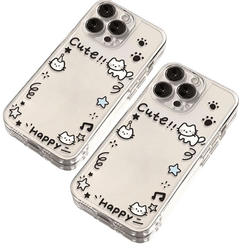 线条小猫放照片小卡适用苹果16promax手机壳女iPhone15p透明14p高级感13卡通12可爱11防摔保护套xr8p软