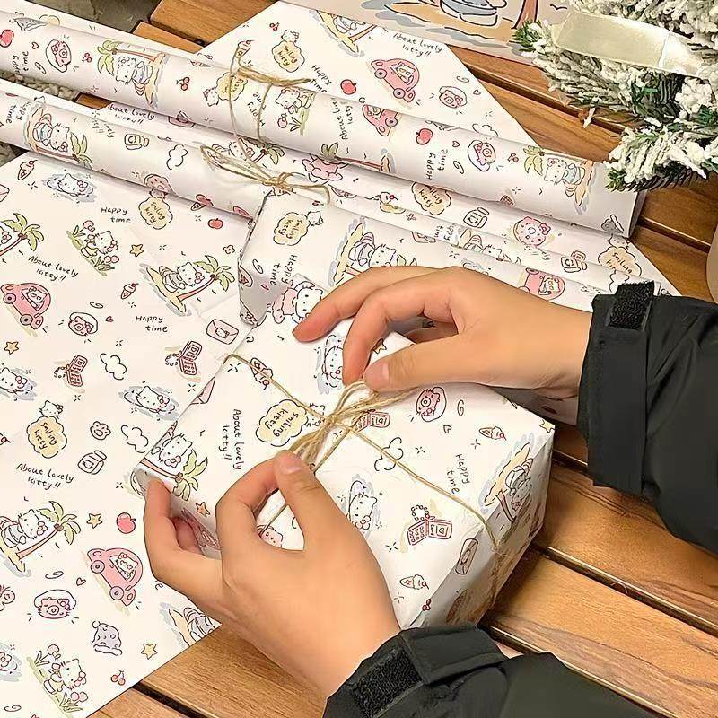 kt生日礼物包装纸猫咪2026新年礼品纸手工大尺寸彩纸可爱小猫包书皮纸材料纸高级感送相框键盘装饰打包纸男生