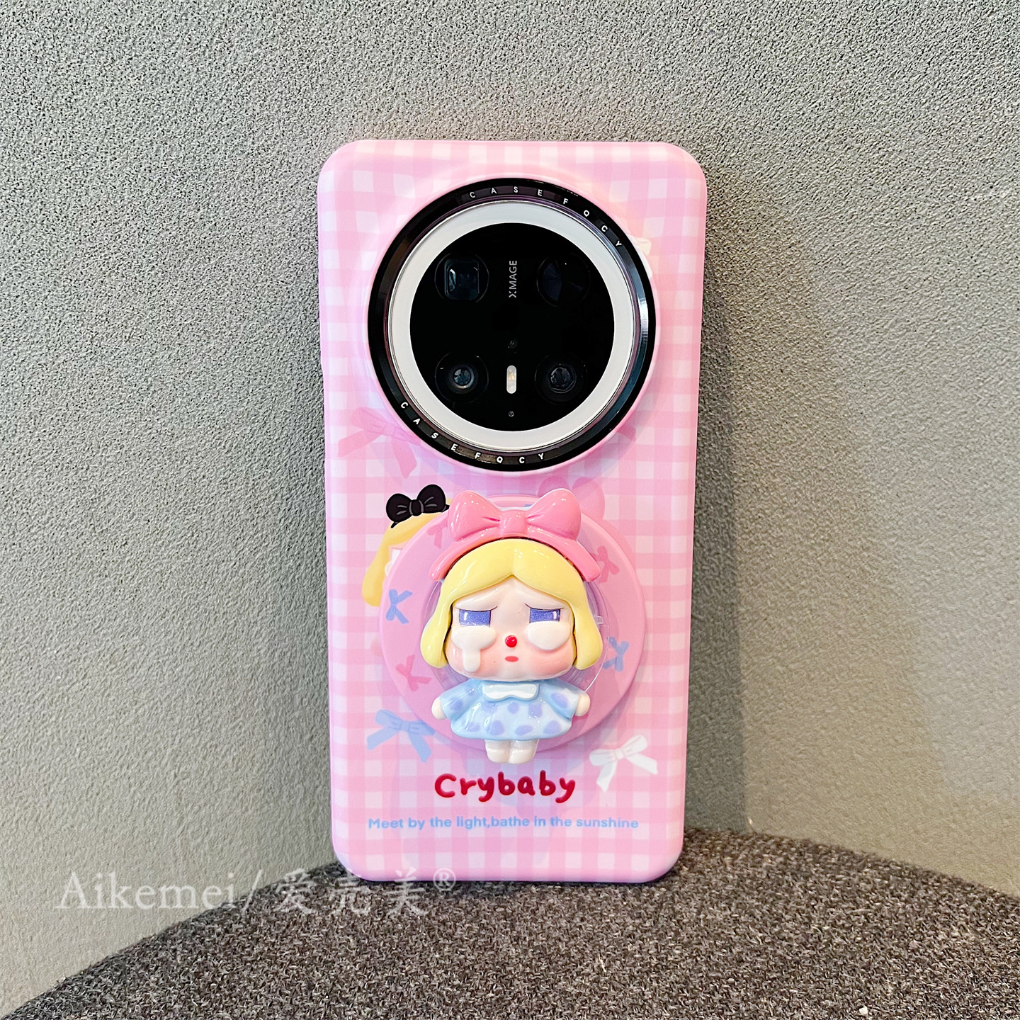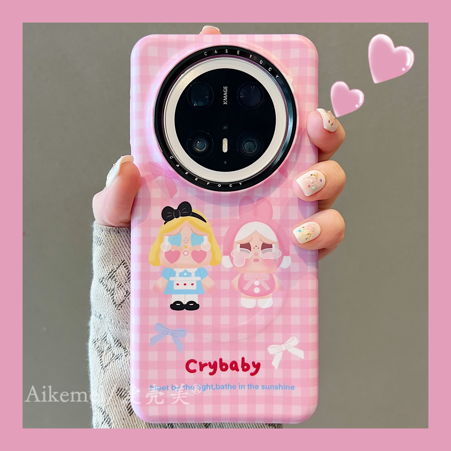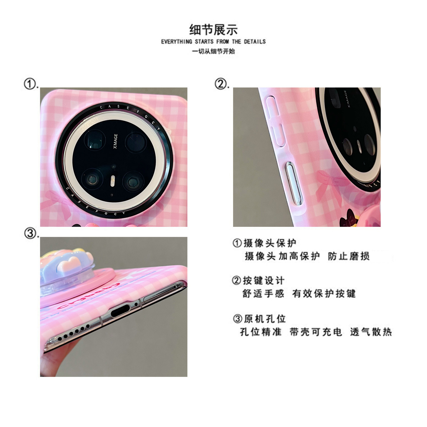 适用华为mate70pro+手机壳p60pro日韩ins粉色格纹女孩mate60pro带磁吸支架mate70超薄菲林硬壳mate60防摔女新