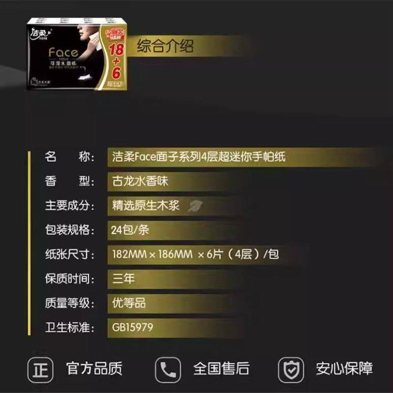 【洁柔手帕纸】古龙水香味手帕纸24包母婴幼4层6抽随身餐巾面巾纸