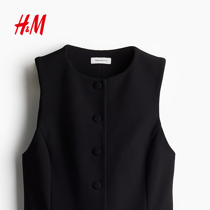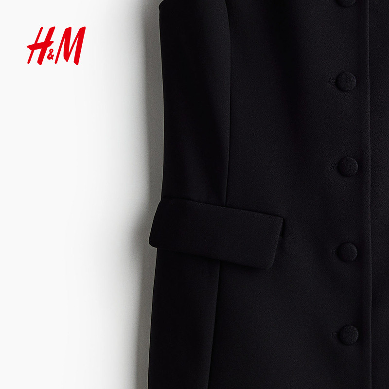 HM女装连衣裙冬季修身时尚纽扣无袖西装式连衣裙1256376
