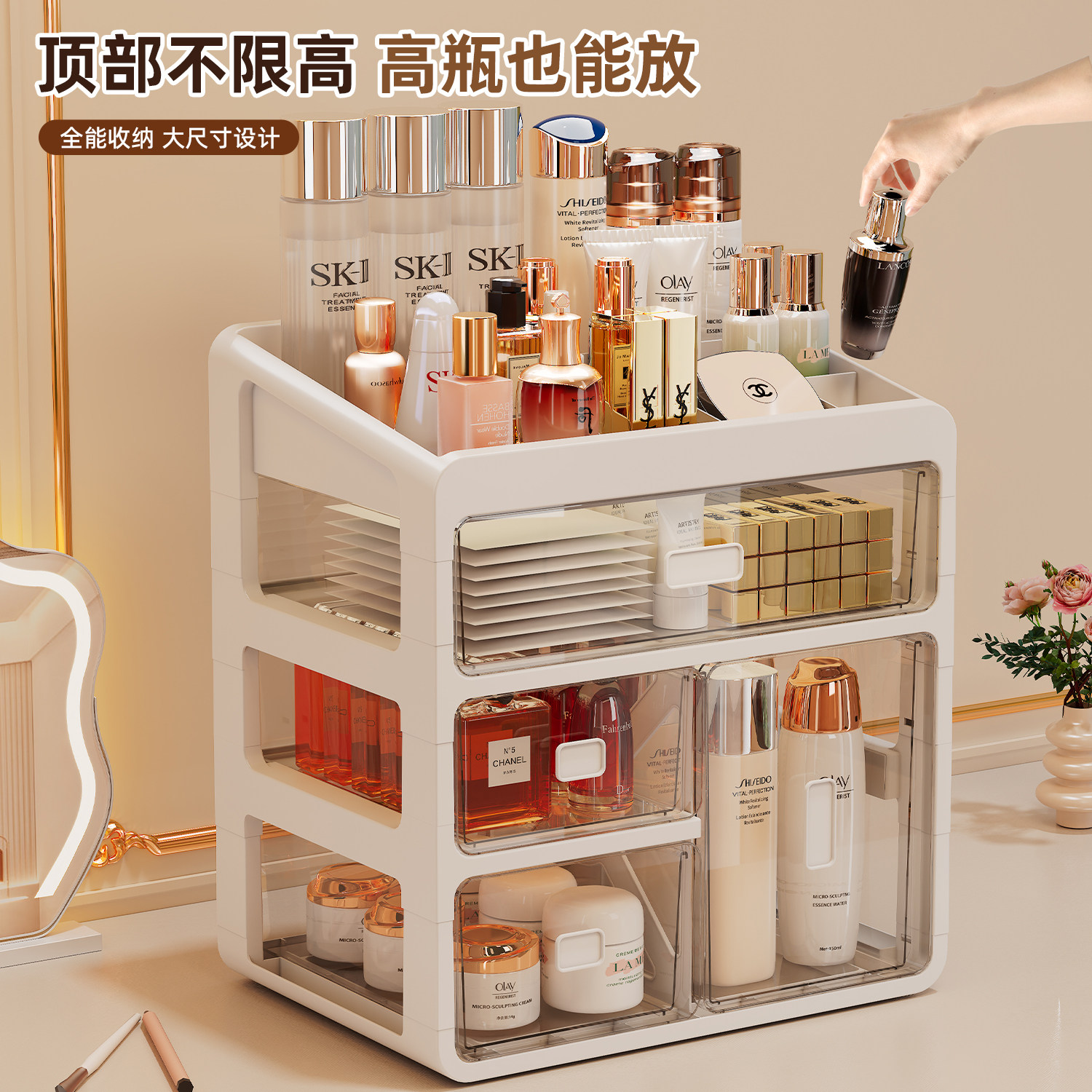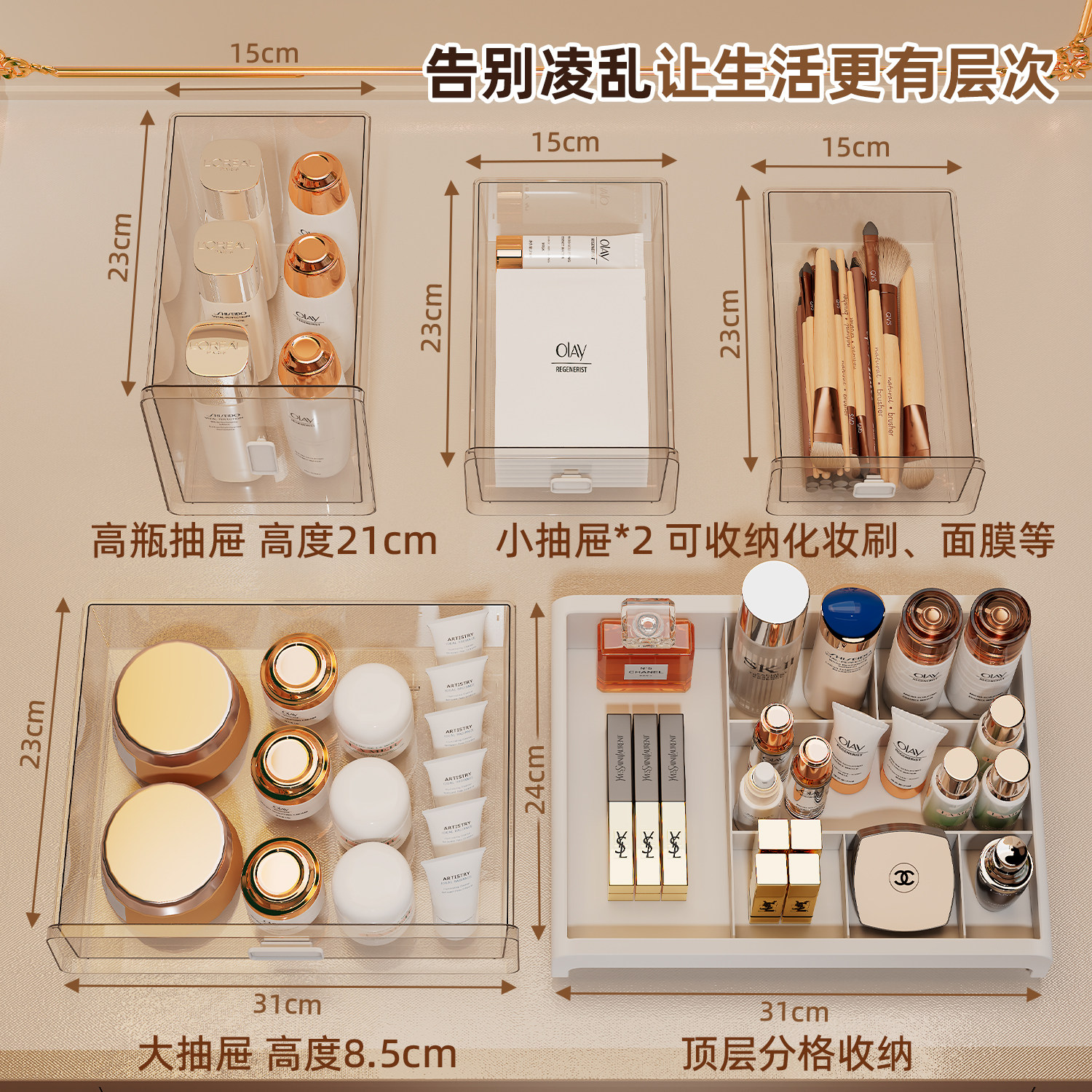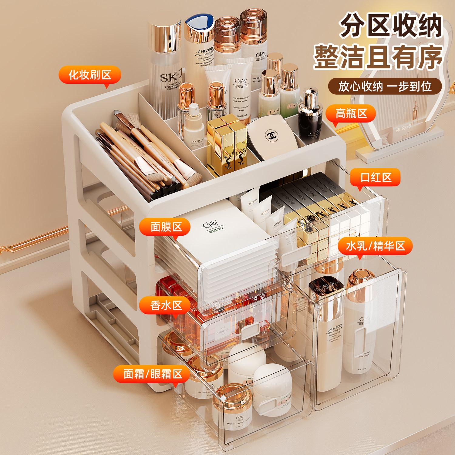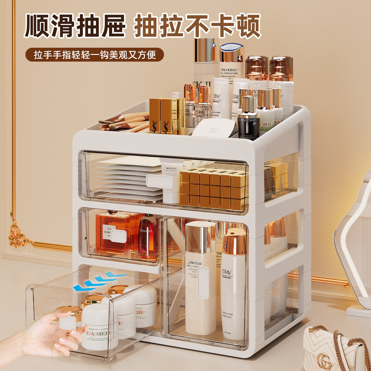化妆品收纳柜抽屉落地置物架多层桌面防尘收纳柜口红护肤品梳妆台