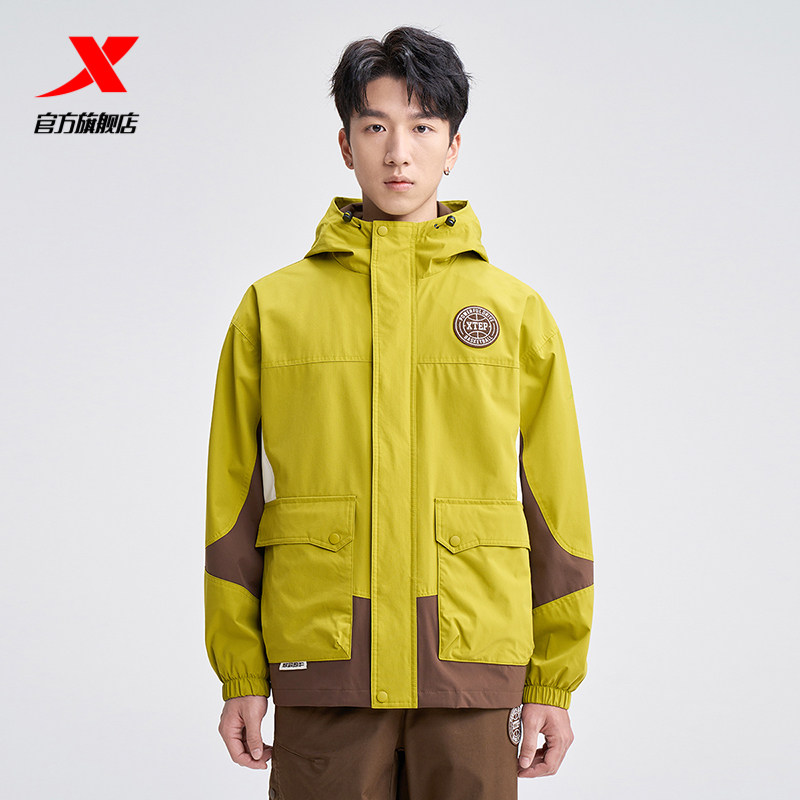 特步双层风衣男士2025秋季新款防风外套薄款运动休闲拼色百搭夹克
