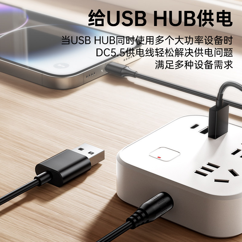 毕亚兹usb转dc5.5mm圆孔充电线圆头通用台灯玩具电源5V电动牙刷音响路由器适用foreo露娜洁面luna洗脸仪mini2