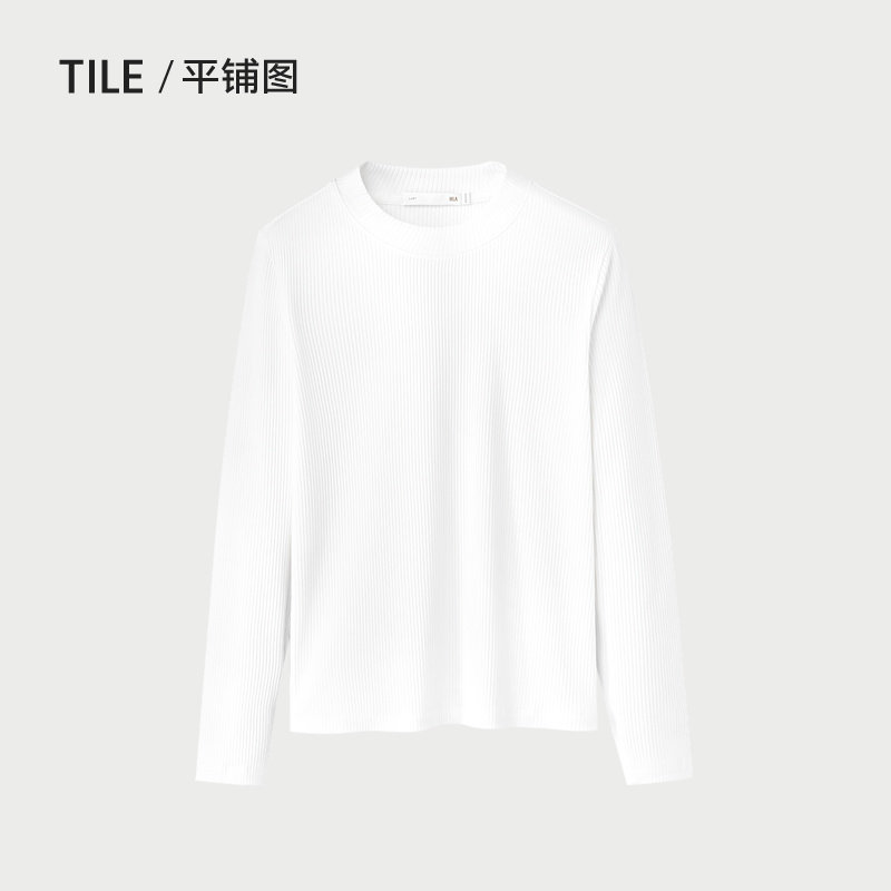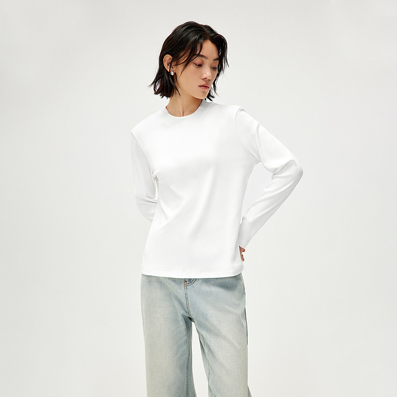 HLA/海澜之家圆领长袖T恤25春夏新款白色时尚直筒针织打底衫女装