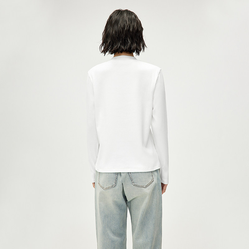 蕉下亨利衫女长袖T恤v领秋冬修身保暖低领打底衫半开领白色上衣