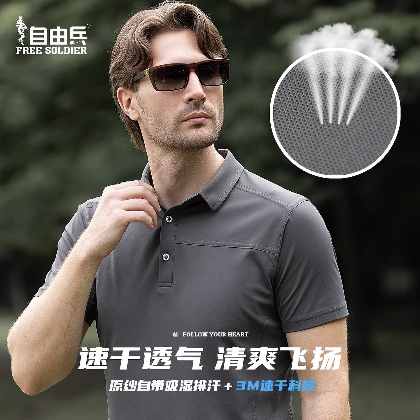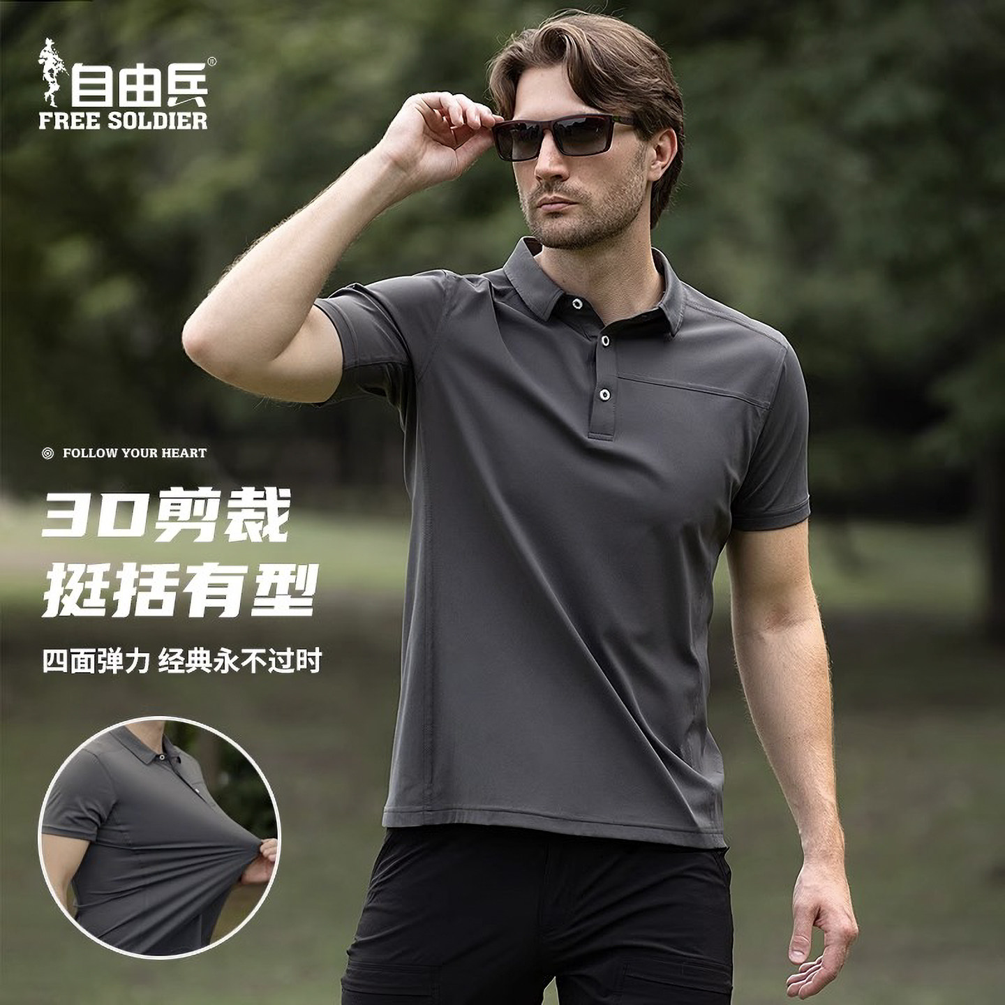 自由兵户外灵翼T400休闲男夏季短袖徒步T恤弹力速干POLO衫保罗衫