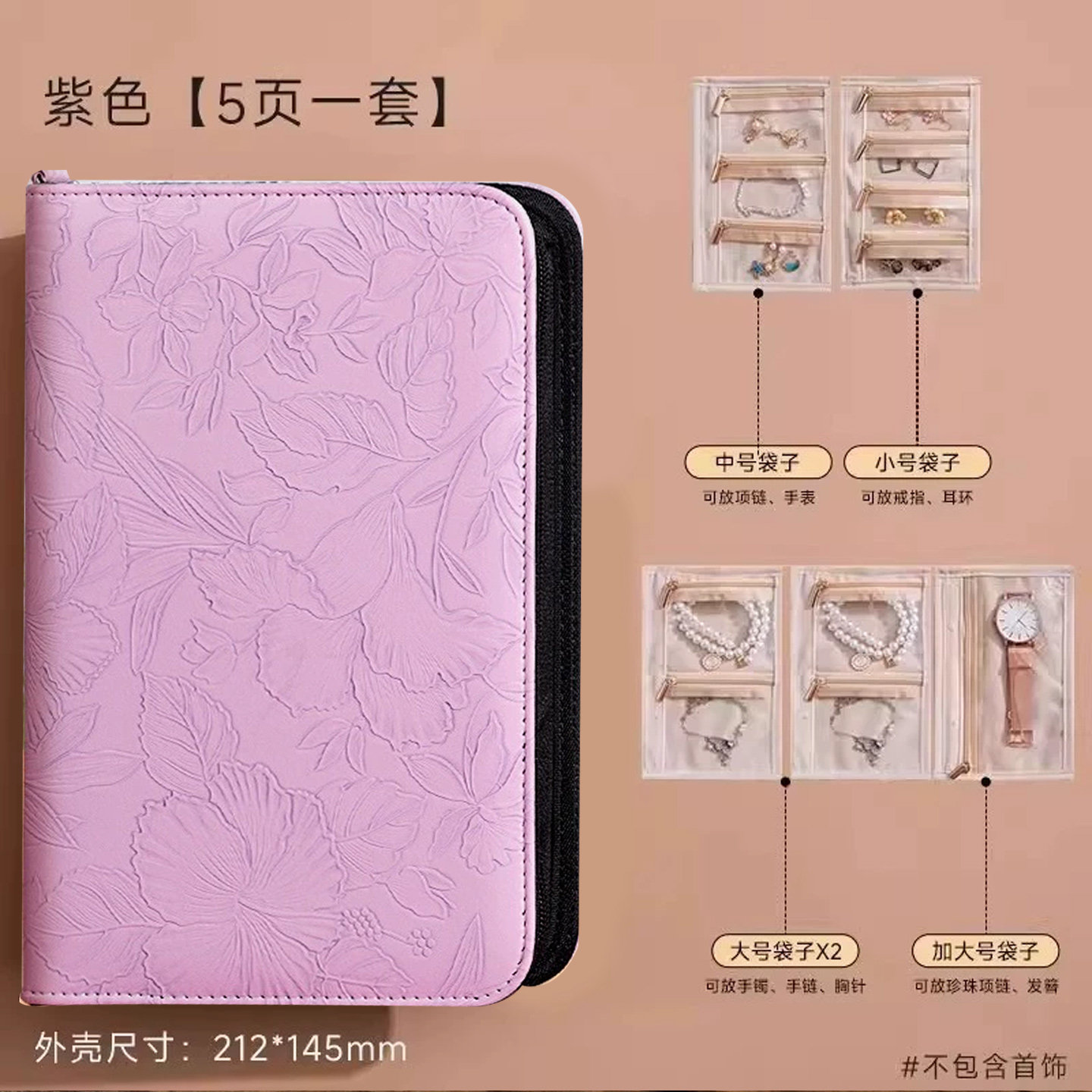 防氧化高档饰品册黄金首饰收纳册新款珠宝便携旅行绒布收纳包戒指项链耳环手链密封袋分格活页保存神器带拉链