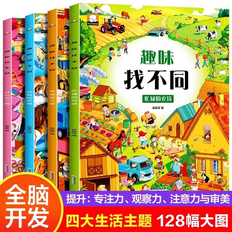 找不同专注力训练图画书3-4-5-6岁儿童走迷宫书全脑开发益智玩具宝宝思维训练早教绘本练习亲子互动游戏书农场动物认知趣味幼儿园