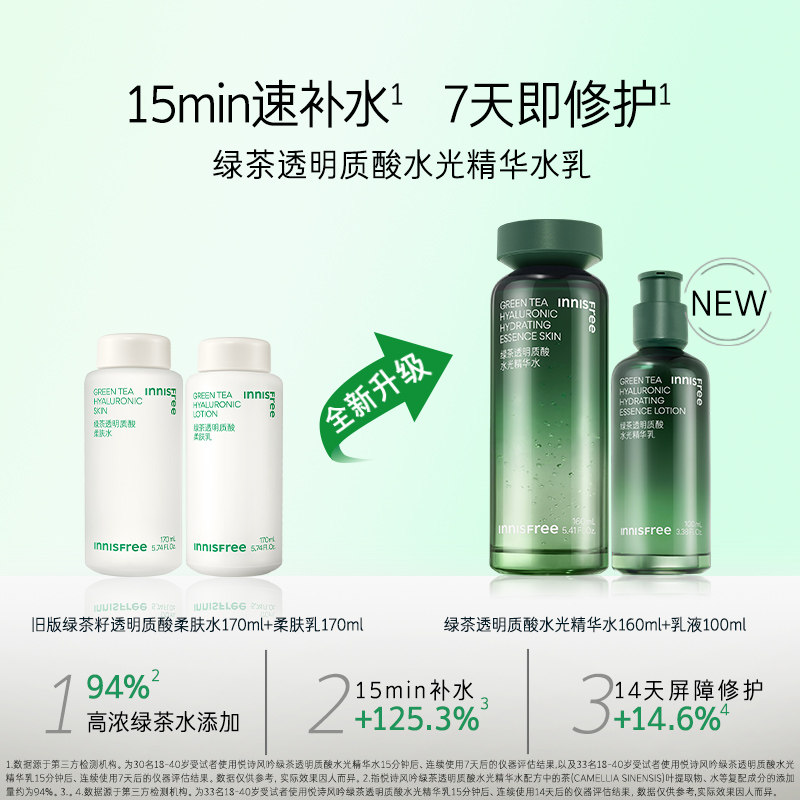 【官方正品】悦诗风吟绿茶透明质酸精华水乳套装保湿舒缓护肤
