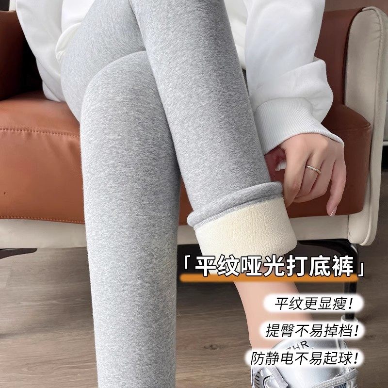 加绒打底裤保暖裤女外穿2025秋冬羊羔绒加厚高腰毛绒棉裤羊毛灰色