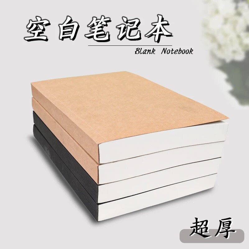 复古牛皮纸笔记本超厚空白本子加厚白纸本草稿本学习可平摊高颜值本记事本日记本a4a5小方格写作本大学生初中