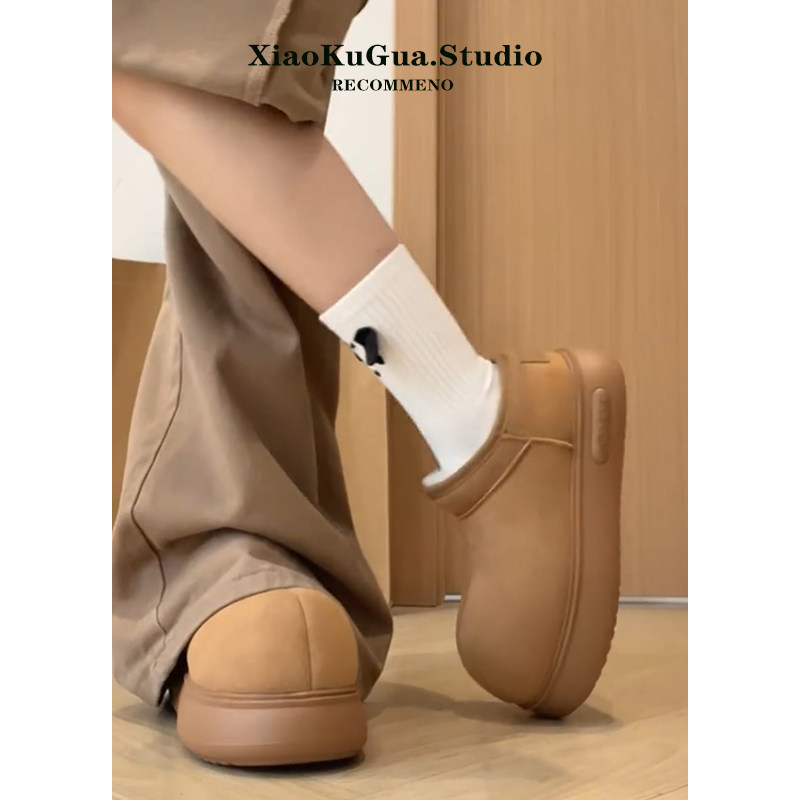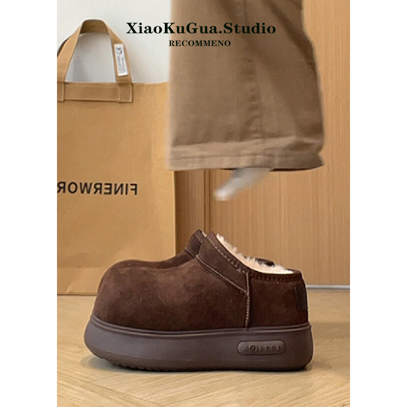低帮厚底雪地靴女2025新款冬季懒人一脚蹬毛毛棉鞋加绒加厚女鞋子