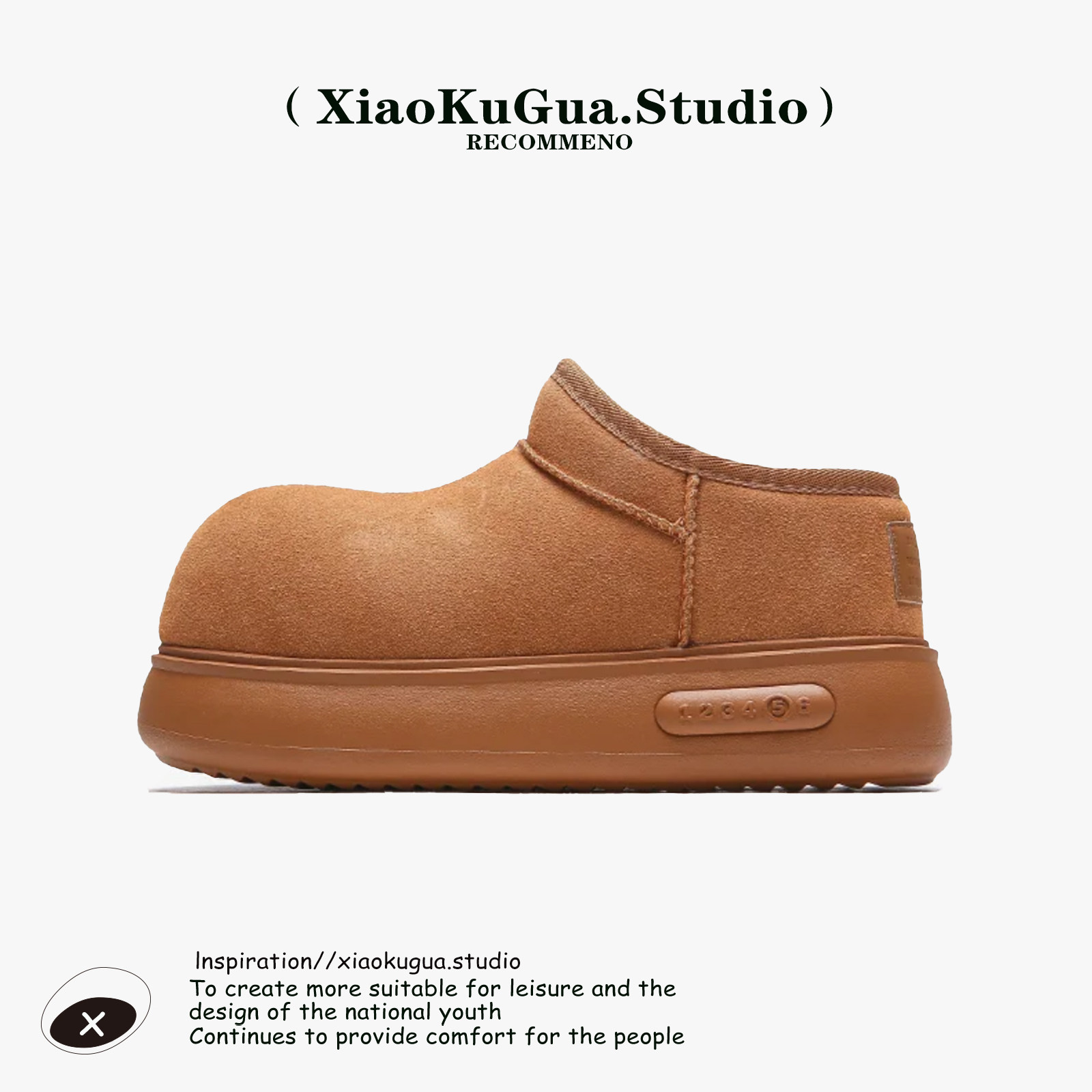 大头保暖雪地靴女2025新款冬季皮毛一体加绒加厚勃肯半拖厚底棉鞋