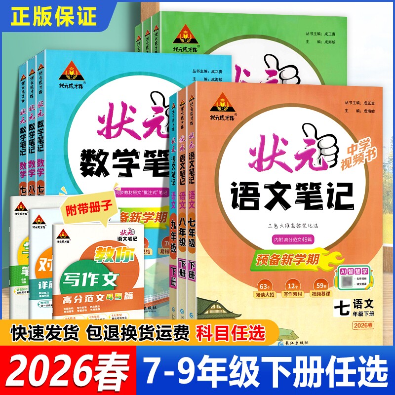 2026春初中状元语文笔记人教部编版七八九年级789年级上下册同步作文视频书七年级上册课堂新版新教材成才历史预习学霸阅读知识点
