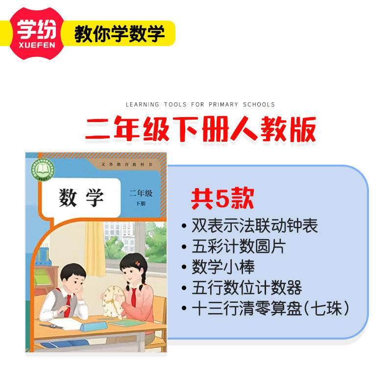 学纷2026新版套装2年级下册人教版课本同步小学生专用学具计数圆片算盘五行计数器数学小棒教学仪器视频讲解
