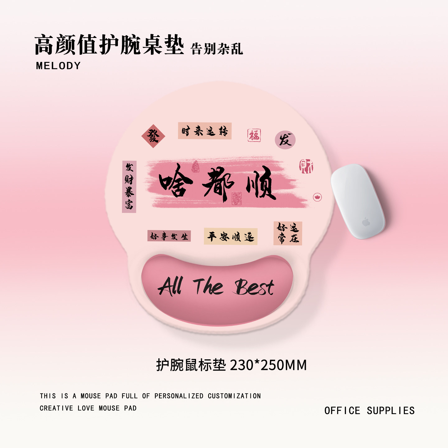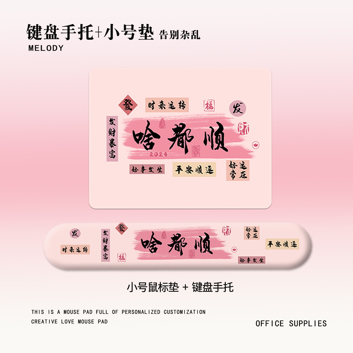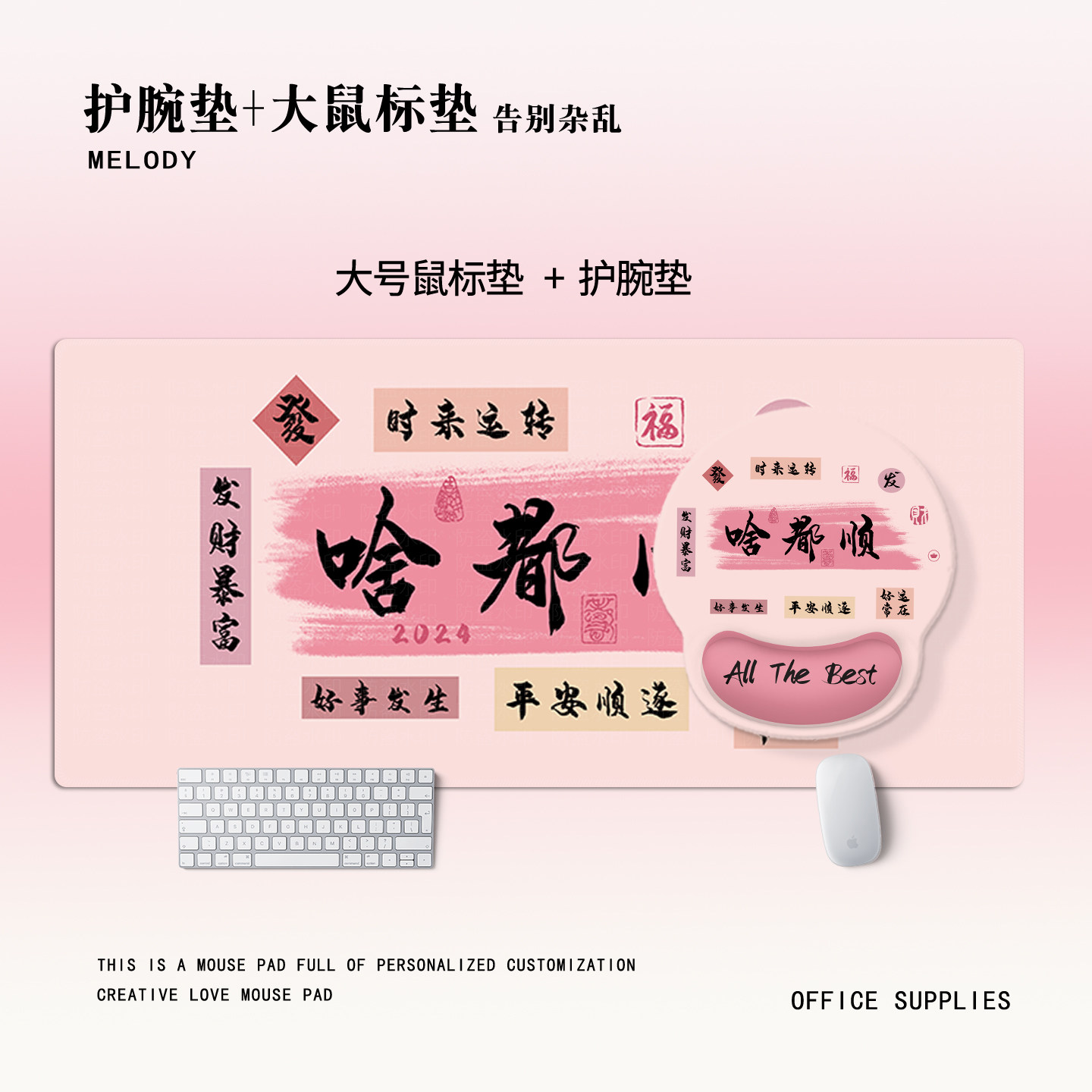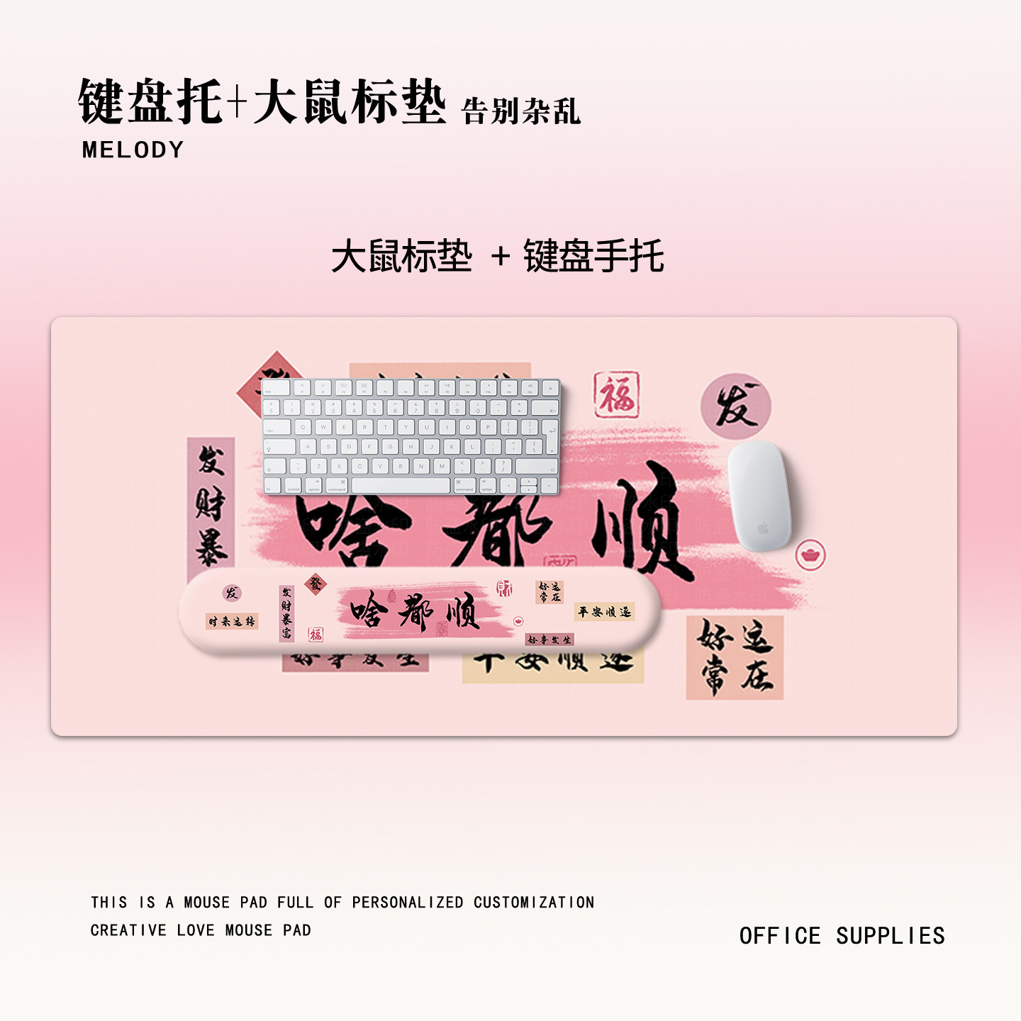 啥都顺护腕鼠标垫超大办公硅胶键盘手托趣味文字高颜值护腕垫套装