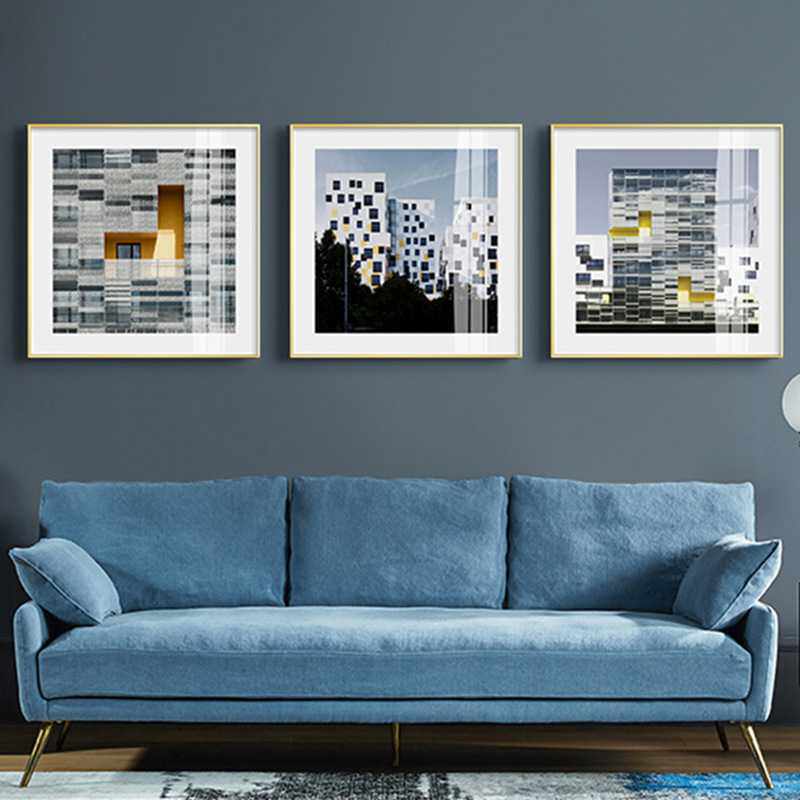 沙发背后装饰画客厅家装挂画建筑现代简约港式轻奢风格卧室背景墙
