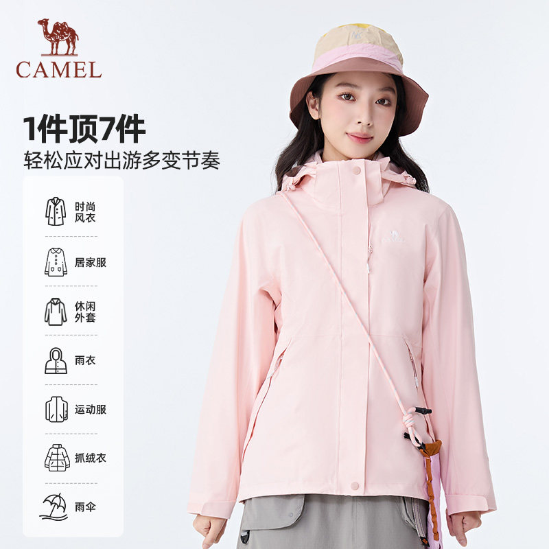 【春日粉】骆驼户外粉色冲锋衣男女款三合一鹅绒内胆羽绒服外套冬