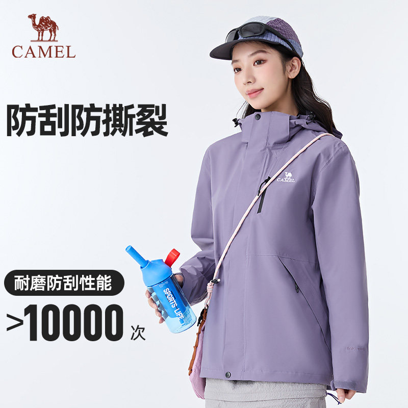 骆驼户外紫玫红色冲锋衣女暴雨防水防风外套男三合一加厚款登山服