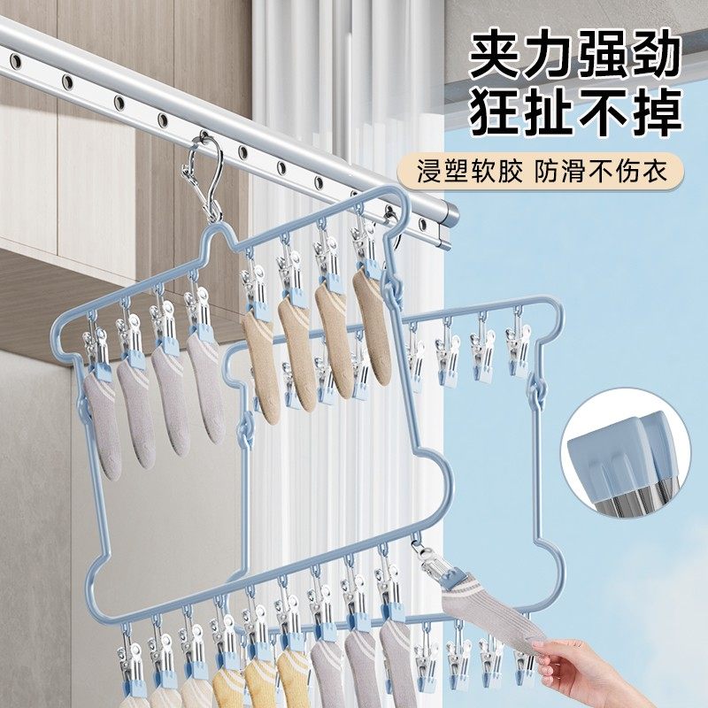 不锈钢袜子晾晒架多夹子家用婴儿袜夹学生宿舍晾衣架阳台防风衣架