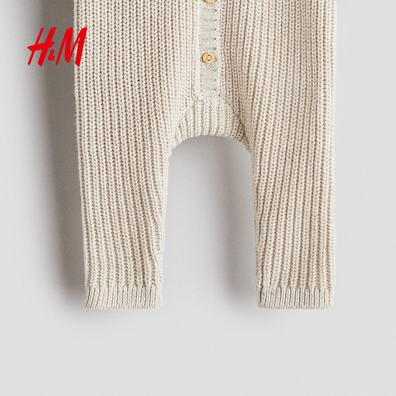 HM童装新生儿男婴女婴家居服圆领长袖长裤棉质针织连体衣1270088