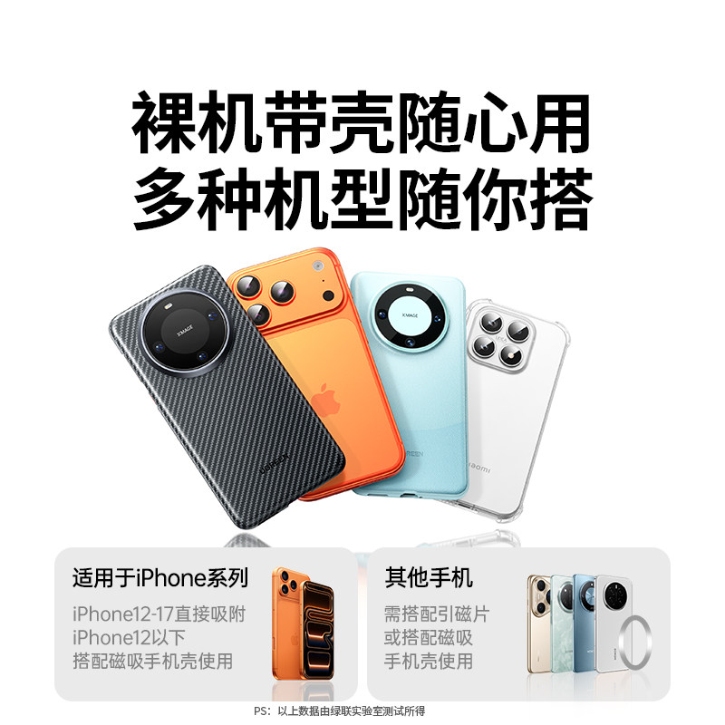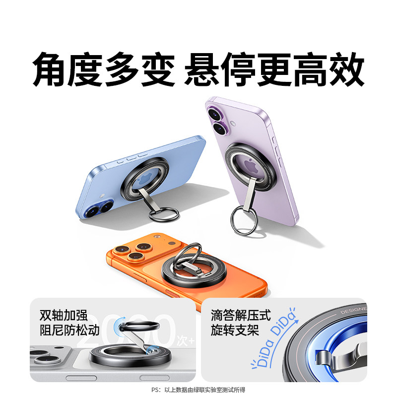 绿联磁吸手机支架指环扣MagSafe新型双面磁吸适用苹果17华为超薄手机架便携自拍旋转式支撑架新款健身房神器