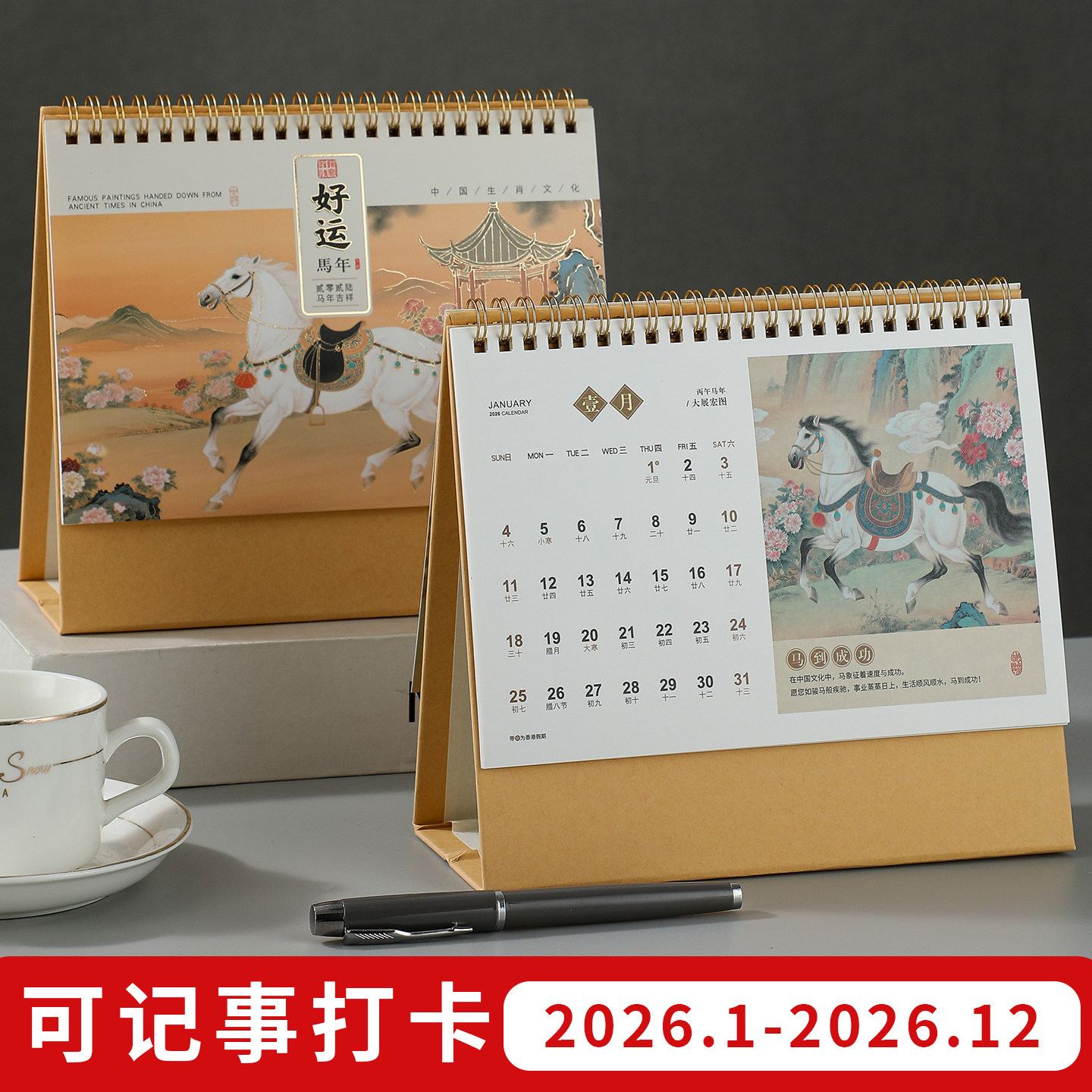 企业台历定制logo2026年新款公司商务广告定做办公室创意日历摆件马年古典日历本记事国潮文艺中国风月历
