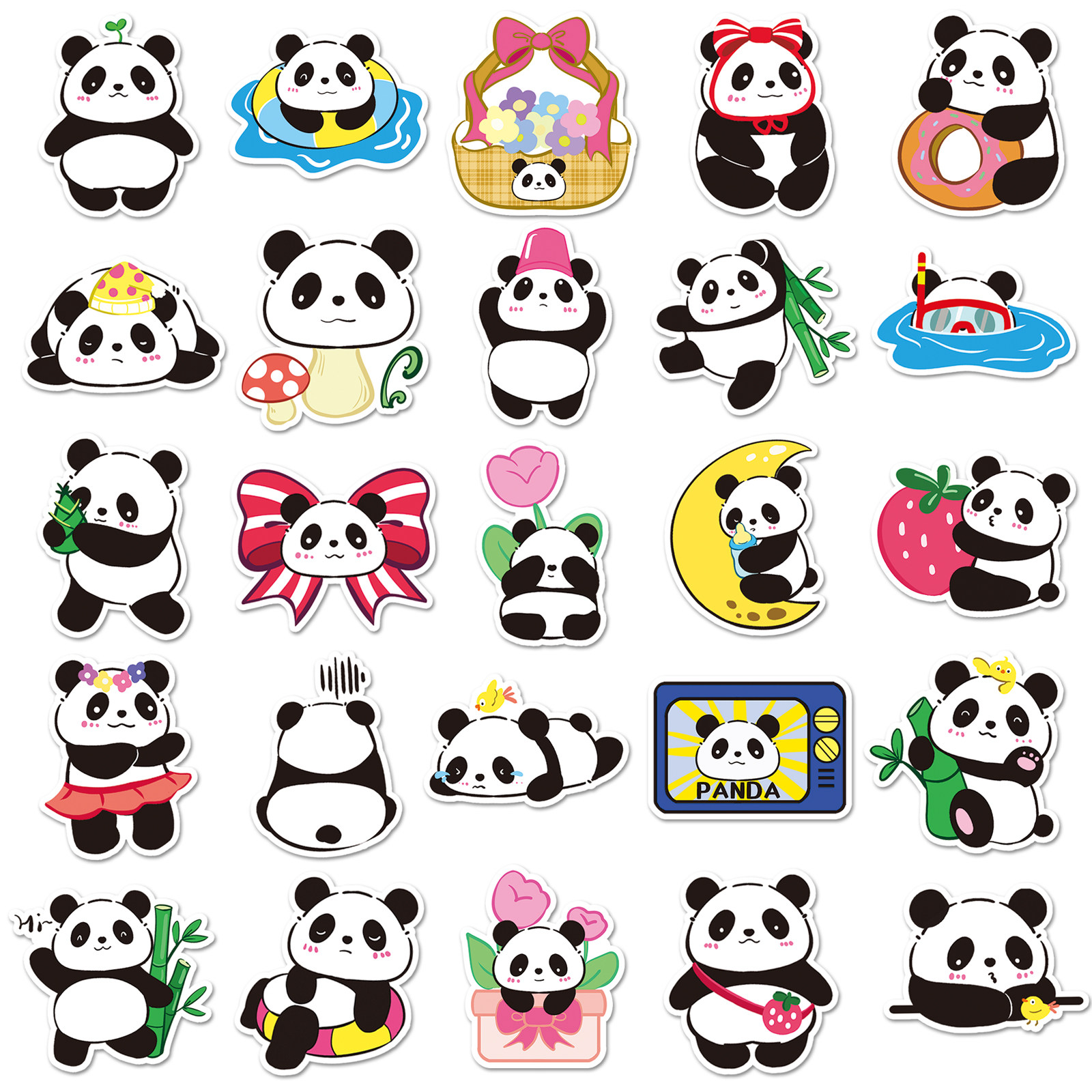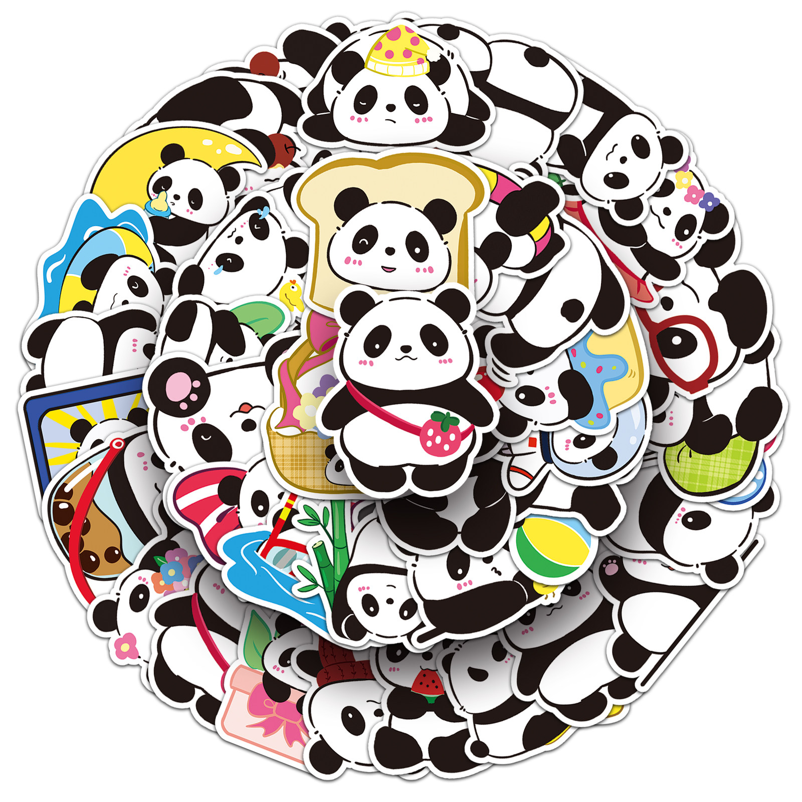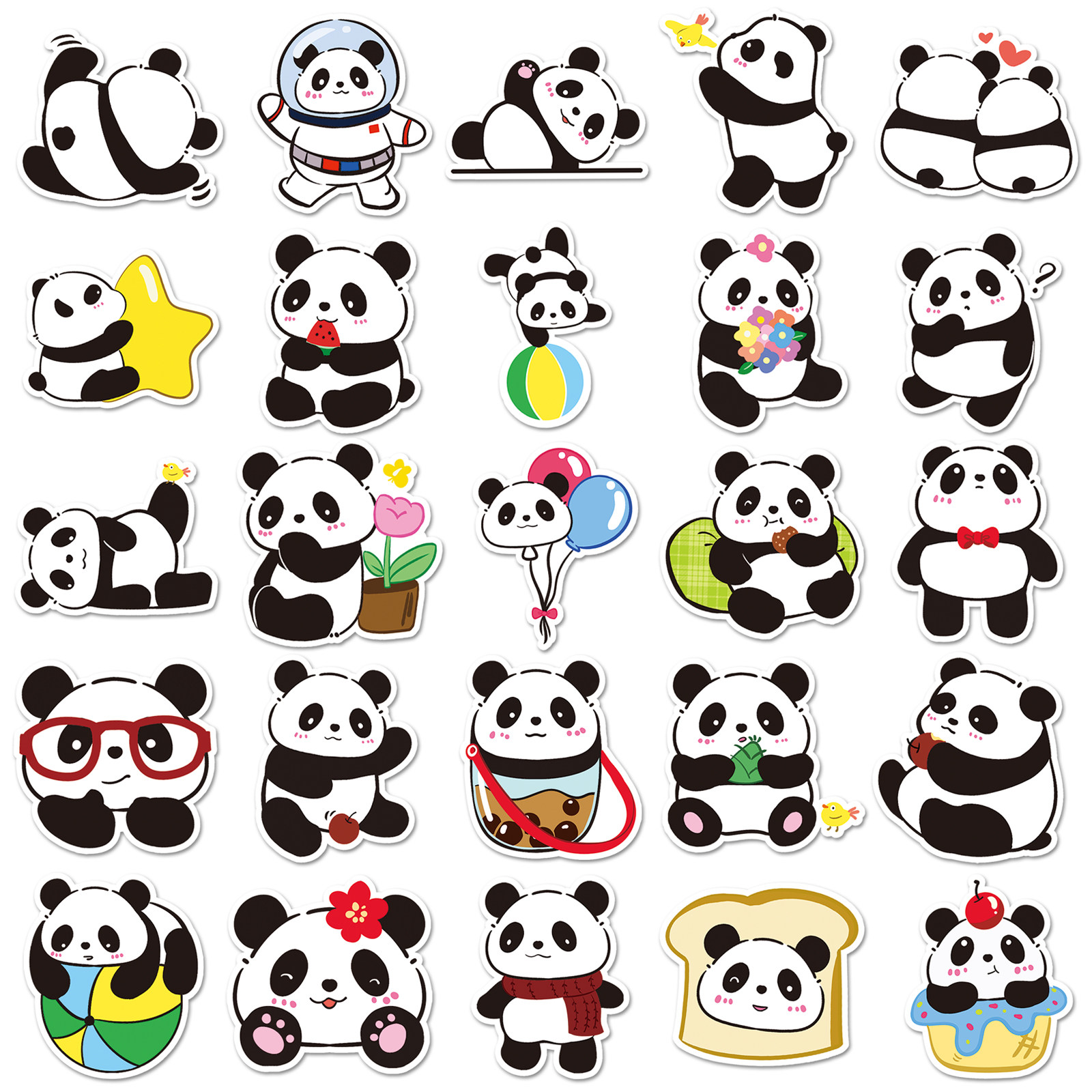100张原创卡通熊猫贴纸个性创意彩绘涂鸦手绘小麻薯萌系素材手机笔记本行李箱滑板车吉他平板水杯保温杯贴画