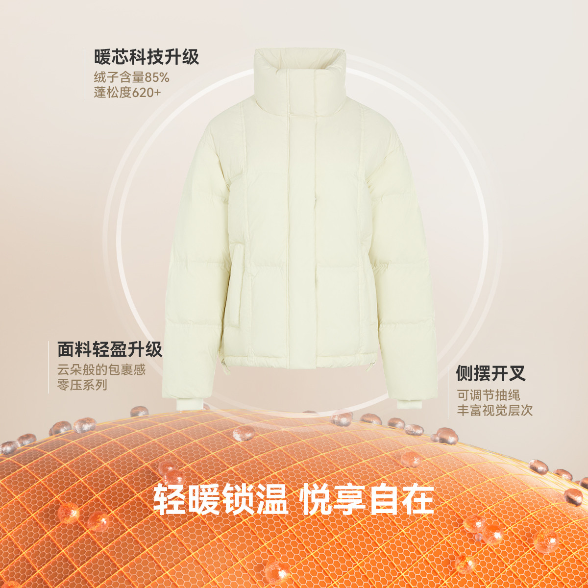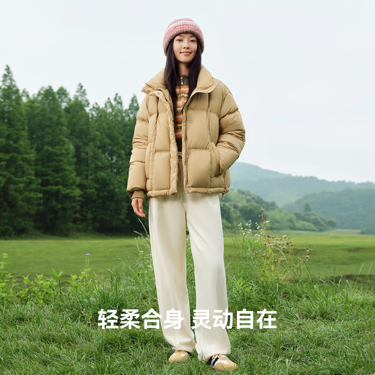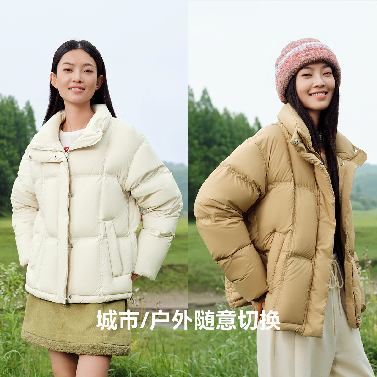 【鞠婧祎同款】鸭鸭2025年冬新款百搭短款女士纯色立领羽绒服外套