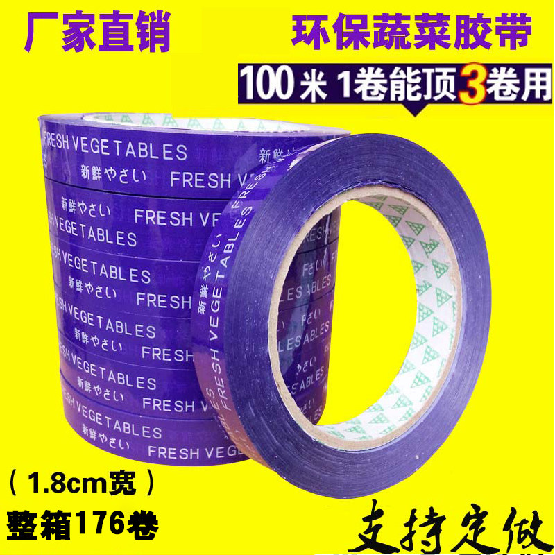 100m整箱超市捆扎蔬菜胶带果蔬扎口胶带生鲜捆扎环保绑菜胶带定做
