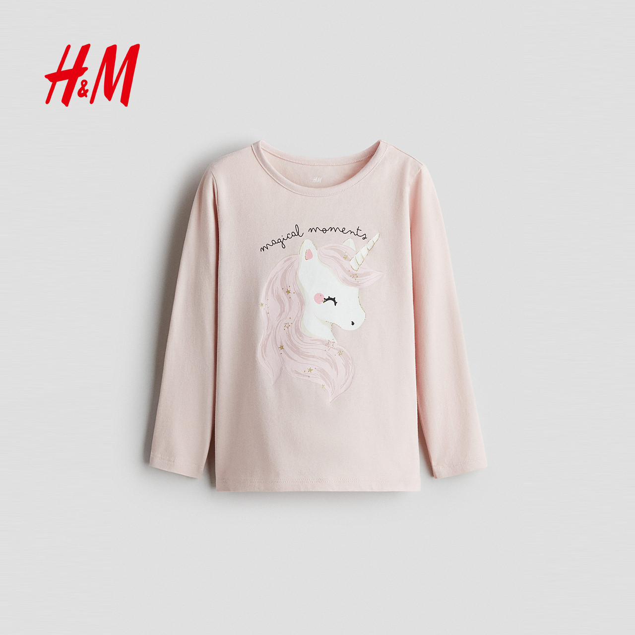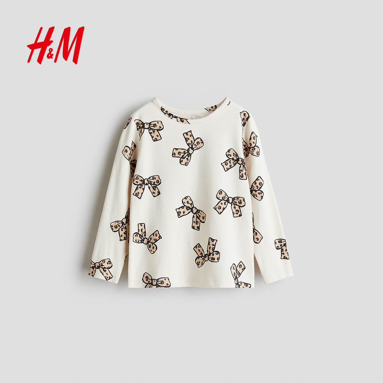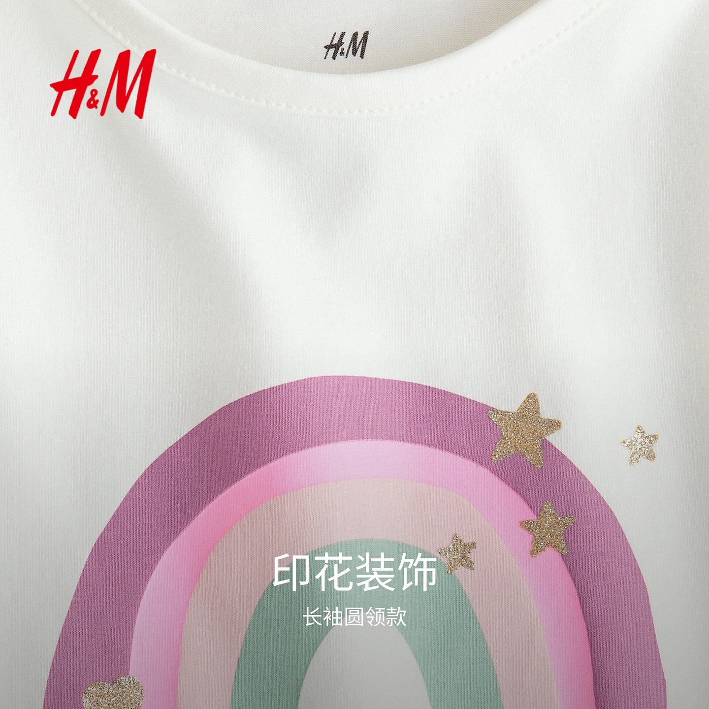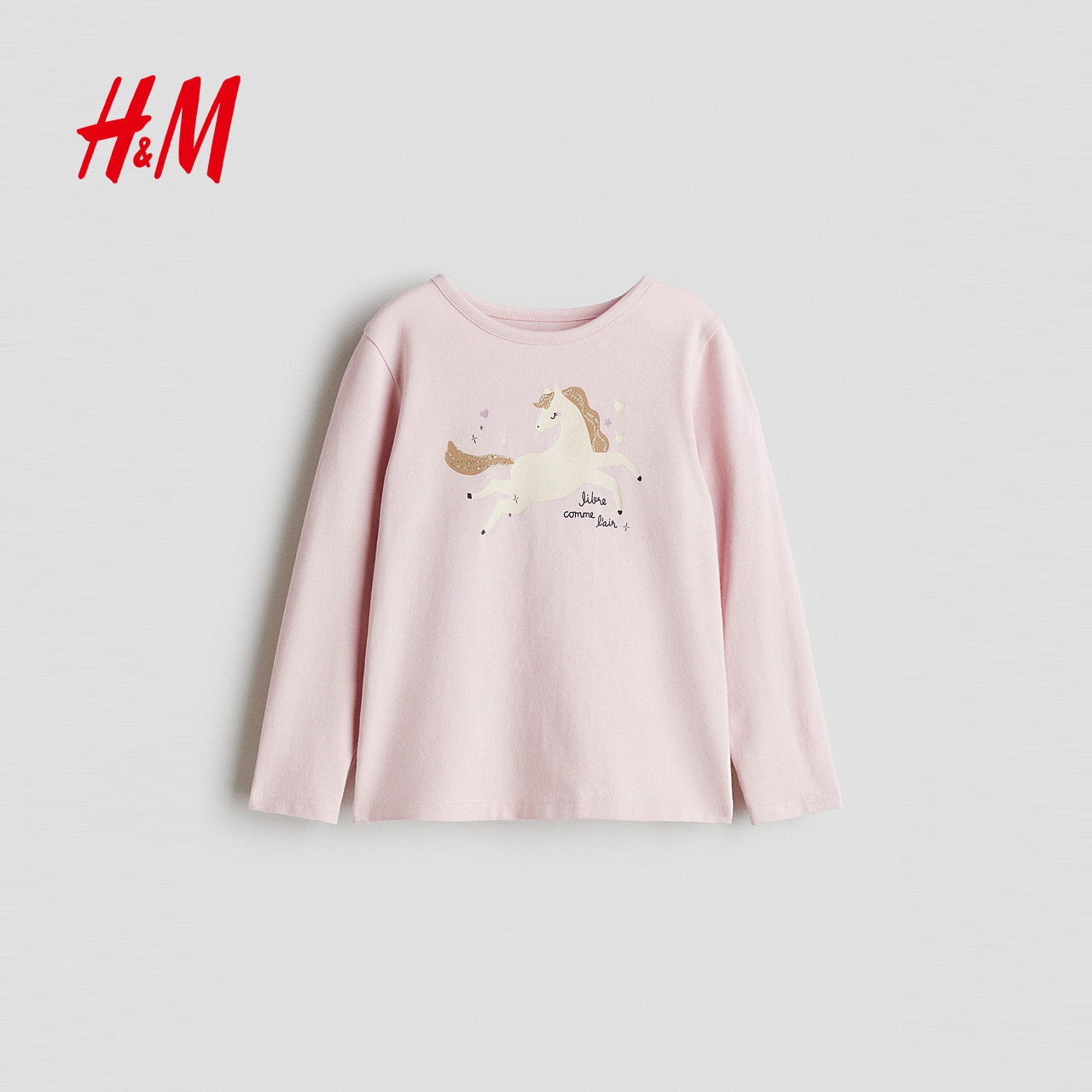 HM童装儿童女童T恤2025年冬新款柔软舒适圆领印花长袖上衣1303341